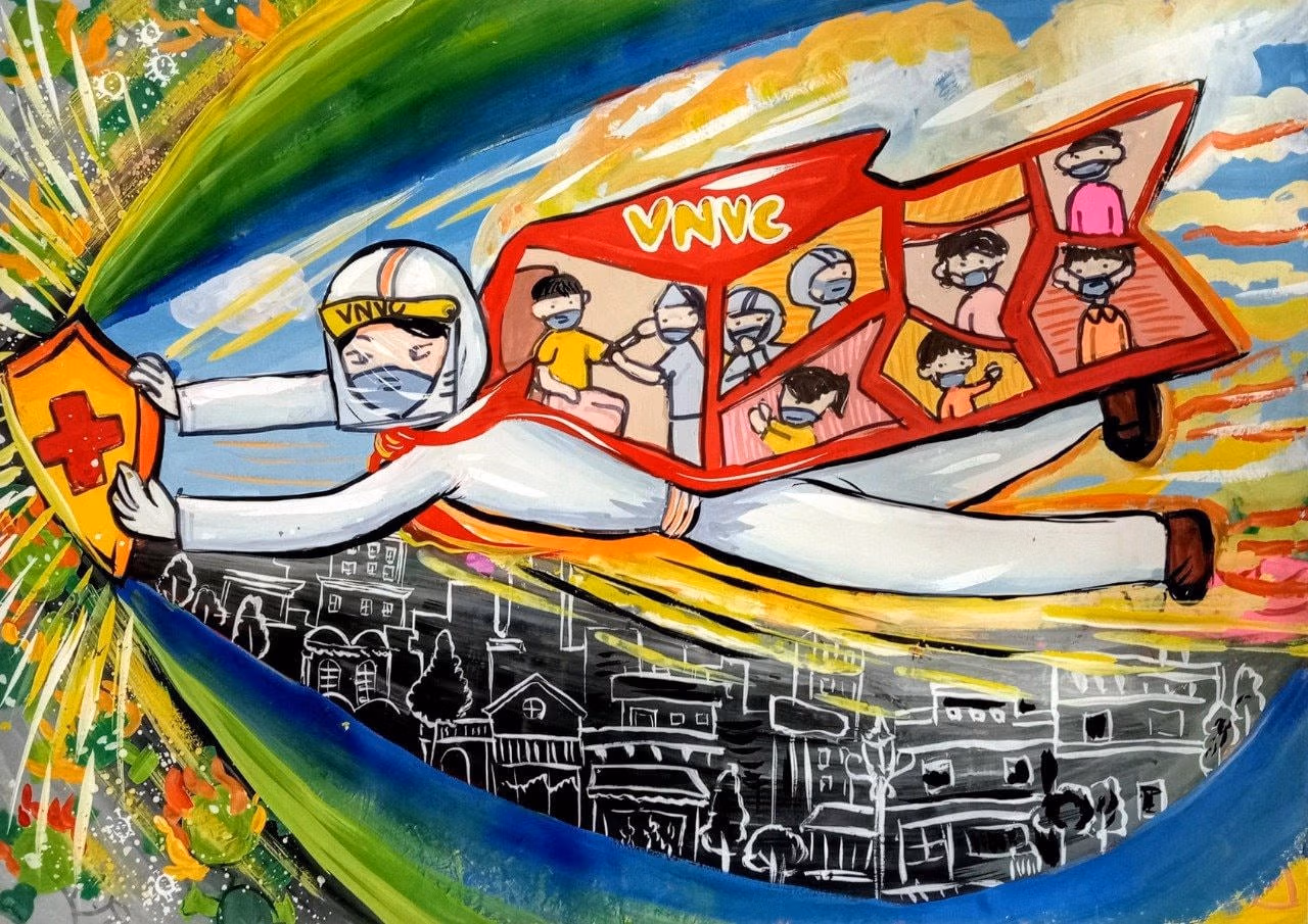Theo VNVC, thông qua tranh vẽ, các em đã thỏa sức thể hiện ý tưởng sáng tạo về hình tượng dũng sĩ, người anh hùng vaccine và tiêm chủng, bác sĩ, các nhân viên y tế trong cuộc chiến chống lại các bệnh truyền nhiễm, bảo vệ sức khỏe cho trẻ em và người lớn trong cộng đồng.