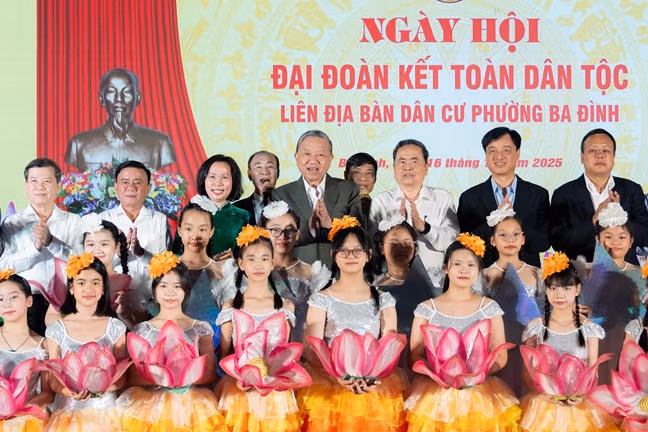 Trong đó, đồng chí Tổng Bí thư Tô Lâm đã tham dự và chung vui Ngày hội với Nhân dân liên địa bàn dân cư phường Thượng Cát và phường Ba Đình và liên địa bàn dân cư cụm 1, phường Ba Đình, thành phố Hà Nội; Chủ tịch nước Lương Cường tham dự Ngày hội Đại đoàn kết toàn dân tộc tại thôn Bảo An, xã Gò Nổi, thành phố Đà Nẵng; Thủ tướng Chính phủ Phạm Minh Chính tham dự Ngày hội tại thôn Thắng Kiên, xã Đề Gi, tỉnh Gia Lai; Chủ tịch Quốc hội Trần Thanh Mẫn tham dự Ngày hội tại khu dân cư ấp Châu Thành, xã An Ninh, thành phố Cần Thơ và liên địa bàn dân cư cụm 1, phường Ba Đình, Hà Nội; Thường trực Ban Bí thư Trần Cẩm Tú dự Ngày hội tại thôn Hồ Sen, xã Thác Bà, tỉnh Lào Cai.