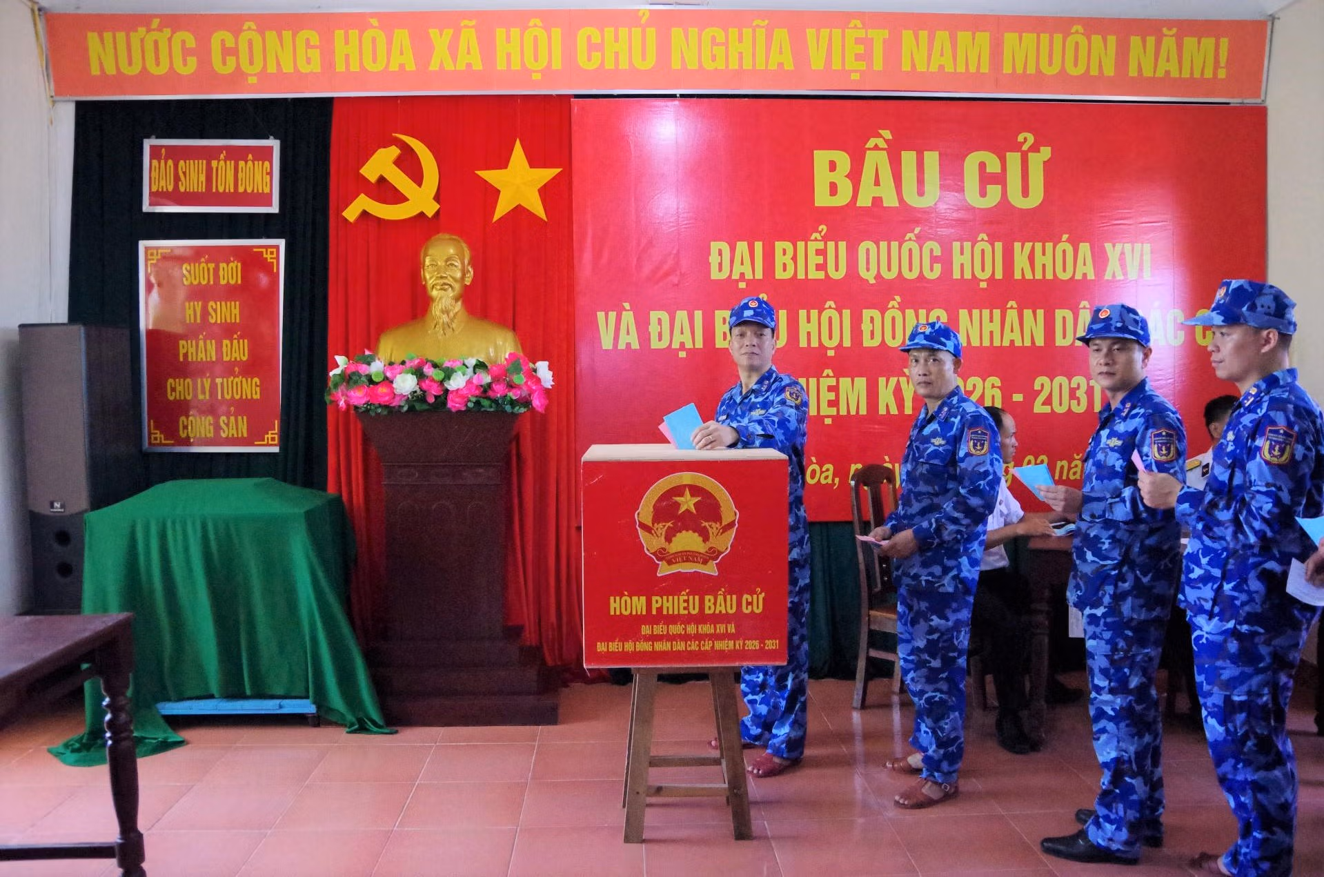 Theo thông tin từ Đặc khu Trường Sa, ngày 8/3, tại các điểm bỏ phiếu trên đảo Sinh Tồn Đông, Đá Nam và Sơn Ca, 112 cán bộ, chiến sĩ thuộc các tàu của Hải đoàn 21 đang làm nhiệm vụ trên biển đã tham gia bầu cử ĐBQH khóa XVI và đại biểu HĐND các cấp nhiệm kỳ 2026-2031.