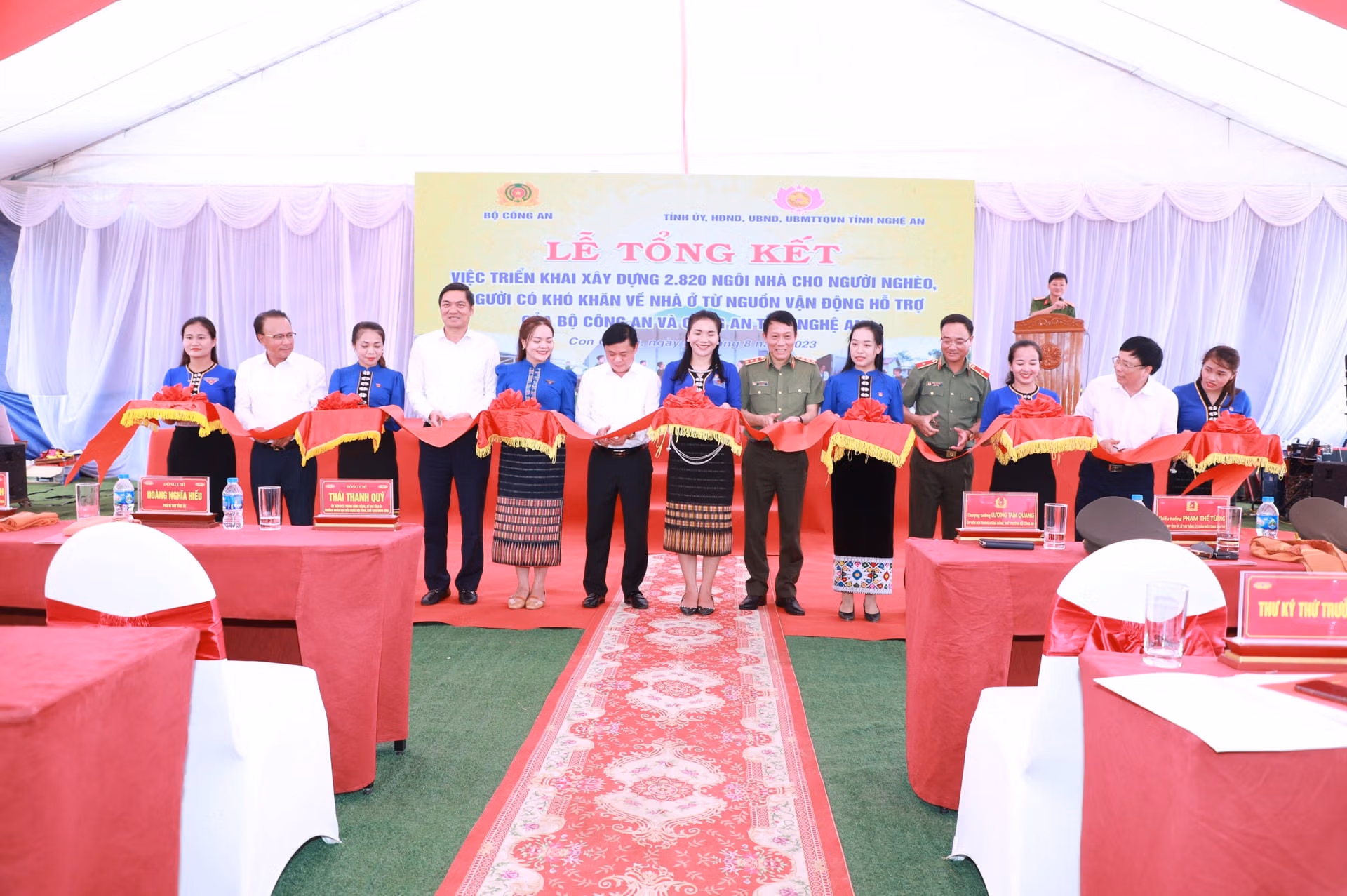 Hưởng ứng Chương trình vận động, hỗ trợ xây dựng nhà cho người nghèo, người có khó khăn về nhà ở trên địa bàn tỉnh của Ban Thường vụ Tỉnh ủy Nghệ An, phát huy tinh thần “vì nước quên thân, vì dân phục vụ”, Bộ Công an đã chủ động kêu gọi, huy động sự giúp đỡ, ủng hộ của các đơn vị tài trợ, nhà hảo tâm hỗ trợ tỉnh Nghệ An xây dựng 1.420 căn nhà cho 27 xã biên giới thuộc 6 huyện: Kỳ Sơn, Tương Dương, Quế Phong, Con Cuông, Anh Sơn, Thanh Chương trị giá 71 tỷ đồng.
