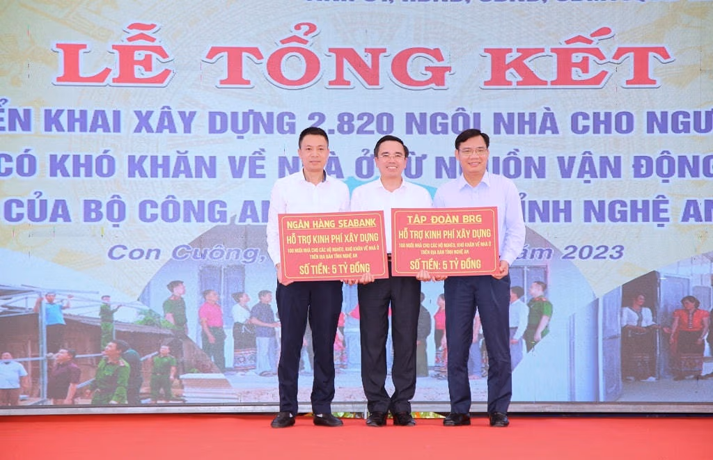 Ngoài ra, Cục C03 (Bộ Công an) hỗ trợ 400 căn nhà trị giá 20 tỷ đồng, Công an Nghệ An vận động hỗ trợ 1.000 căn nhà trị giá 50 tỷ đồng.