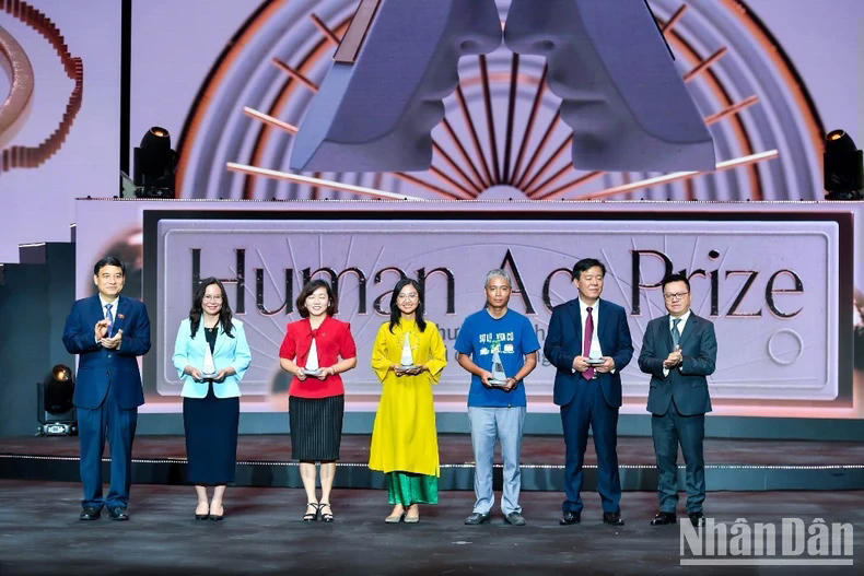 Ông Lại Xuân Môn, Ủy viên Trung ương Đảng, Phó Trưởng ban Thường trực Ban Tuyên giáo Trung ương trao Giải Human Act Prize cho 5 dự án, sáng kiến xuất sắc. Đây là hạng mục giải quan trọng nhất của Giải thưởng Hành động vì Cộng đồng của Báo Nhân Dân - Human Act Prize 2023, bao gồm: