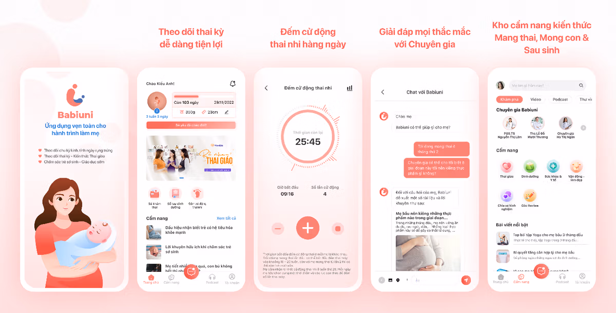 Với sự phát triển mạnh mẽ của công nghệ số, nhiều ứng dụng, app theo dõi thai kỳ được ra đời giúp ba mẹ dễ dàng hơn trong hành trình mang thai của mình.