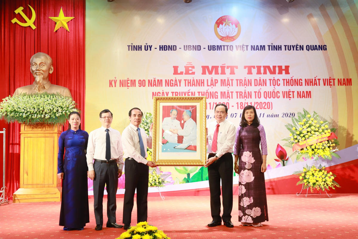Tại buổi lễ, Bí thư Trung ương Đảng, Chủ tịch UBTƯ MTTQ Việt Nam Trần Thanh Mẫn đã trao tặng Tỉnh ủy; HĐND, UBND, Ủy ban MTTQ tỉnh Tuyên Quang bức tranh Bác Hồ và Bác Tôn - biểu tượng thiêng liêng của khối đại đoàn kết toàn dân tộc.