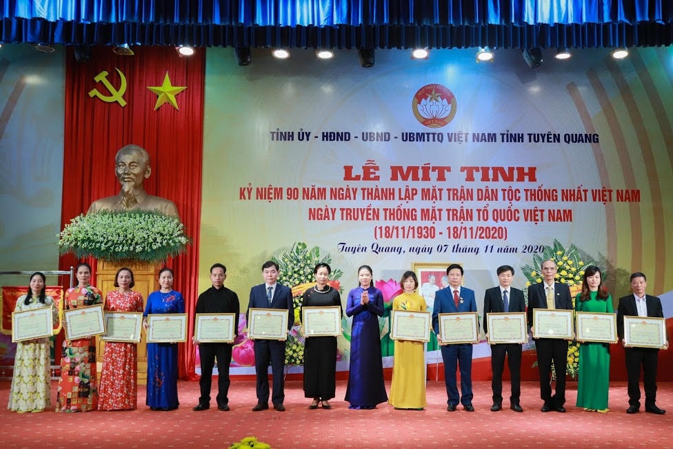 Nhân dịp này, UBND tỉnh Tuyên Quang đã tặng Cờ thi đua cho 2 tập thể, Bằng khen cho 28 tập thể và 37 cá nhân đã có thành tích xuất sắc trong phong trào thi đua “Toàn dân đoàn kết xây dựng nông thôn mới, đô thị văn minh” trên địa bàn tỉnh giai đoạn 2016-2020; tặng Bằng khen cho 17 cá nhân có thành tích xuất sắc góp phần xây dựng khối đại đoàn kết toàn dân tộc.