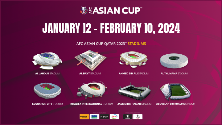 Liên đoàn bóng đá châu Á (AFC) công bố 8 sân vận động được sử dụng để tổ chức VCK Asian Cup 2023 tại Qatar vào năm 2024.