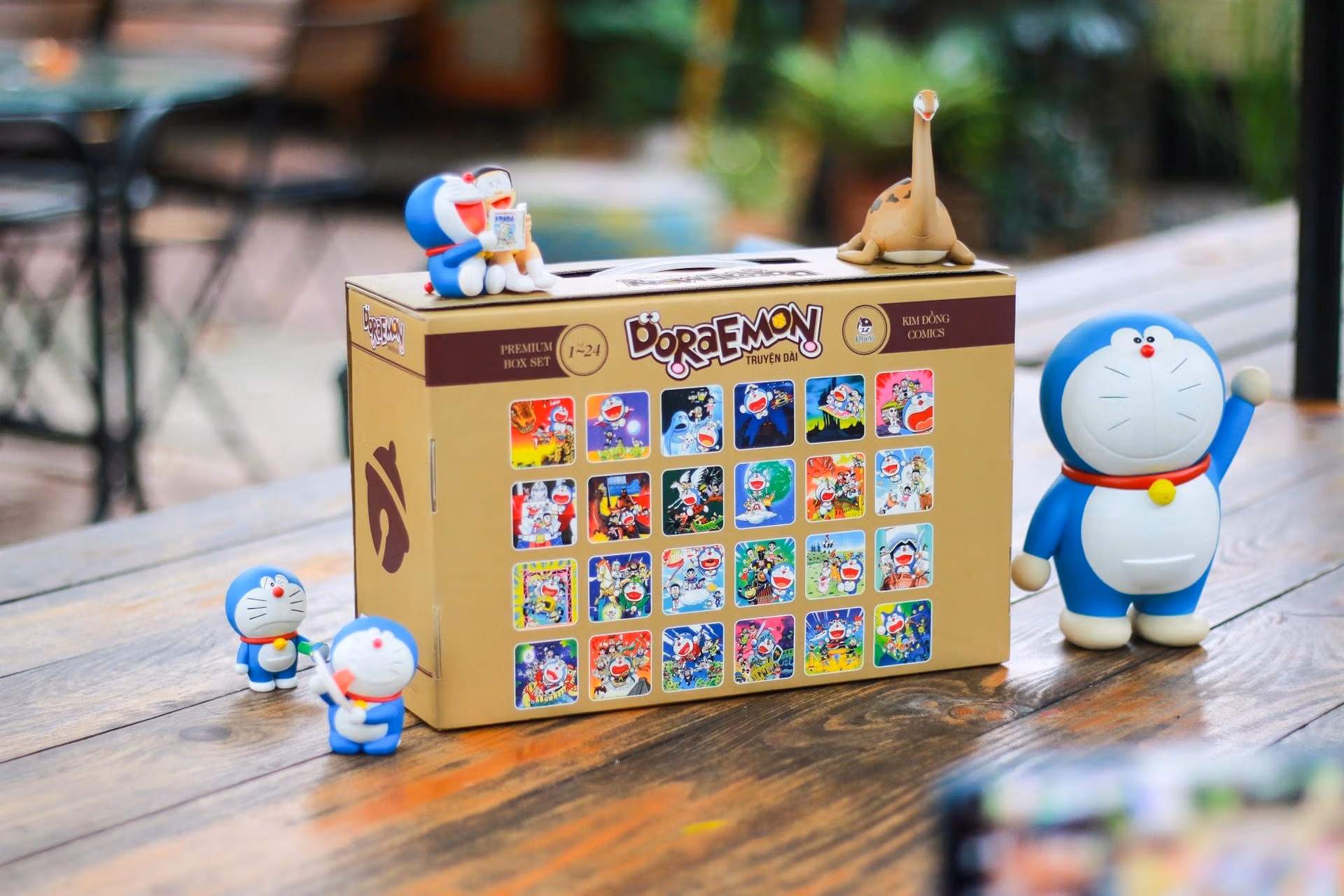 Nhân dịp kỉ niệm 90 năm Ngày sinh tác giả Fujiko F Fujio, NXB Kim Đồng trân trọng gửi đến bạn đọc 24 chuyến phiêu lưu nhiệm màu đã gắn liền với tuổi thơ của biết bao thế hệ độc giả Việt Nam, với hình thức đặc biệt, đặt trong chiếc hộp dạng vali quai xách cứng cáp kèm theo những tặng phẩm độc quyền cho những ai yêu mến họa sĩ Fujiko và chú mèo máy Doraemon.