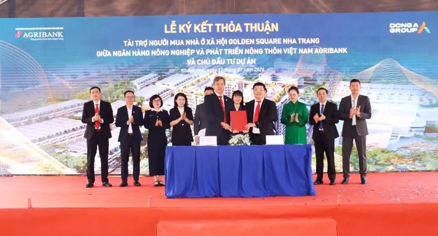 Sáng ngày 12/1, tại tỉnh Khánh Hòa, Ngân hàng Nông nghiệp và Phát triển Nông thôn Việt Nam (Agribank) tổ chức Lễ ký kết tài trợ vốn tín dụng cho Dự án Nhà ở xã hội Square Nha Trang do Liên danh Công ty Cổ phần Đông Á Golden Square – Công ty Cổ phần Foodinco Quy Nhơn làm chủ đầu tư. Sự kiện có ý nghĩa thiết thực trong việc triển khai các chủ trương, chính sách lớn của Đảng, Nhà nước về phát triển nhà ở xã hội, bảo đảm an sinh và ổn định đời sống cho người dân. Điểm đặc biệt của Dự án là sáng kiến của Agribank ưu tiên dành một phần quỹ căn hộ để hỗ trợ cán bộ, chiến sĩ Vùng 4 Hải quân – lực lượng đang trực tiếp thực hiện nhiệm vụ quản lý, bảo vệ chủ quyền biển, đảo thiêng liêng của Tổ quốc.