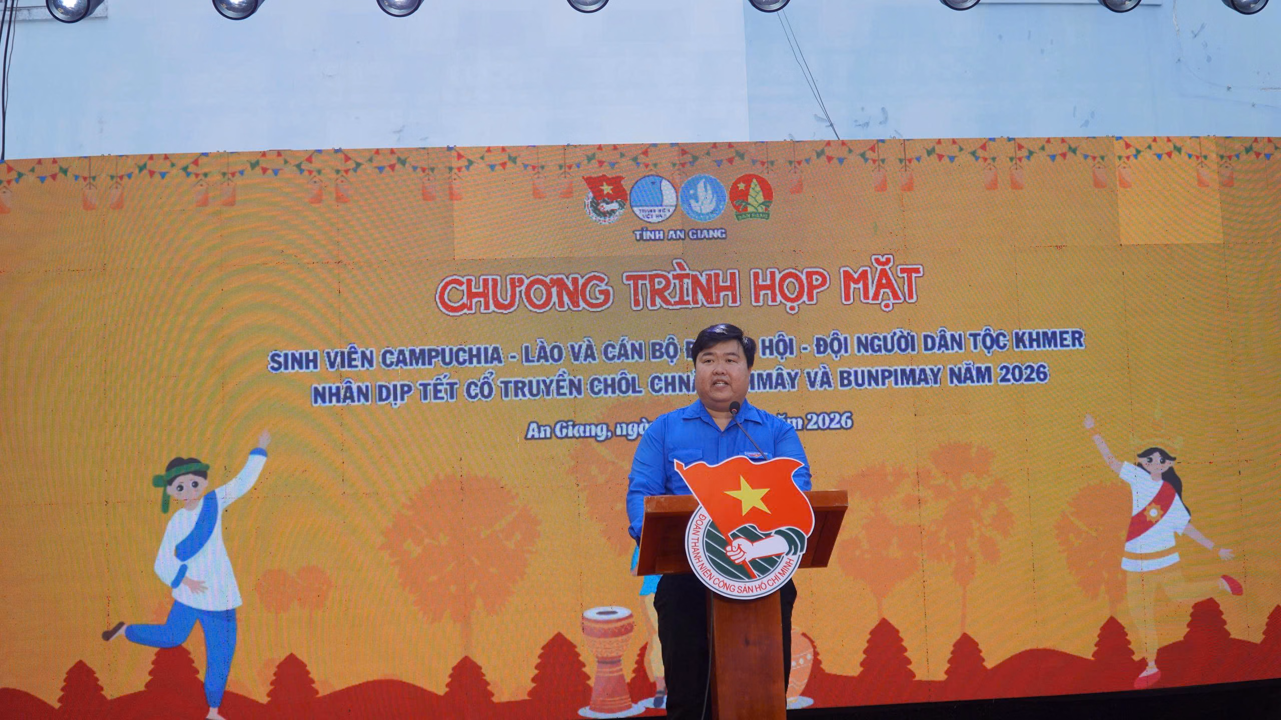 Phát biểu tại buổi họp mặt, Phó Bí thư Tỉnh đoàn, Chủ tịch Hội đồng đội tỉnh An Giang Dư Phạm Hữu Khuyến chúc các bạn sinh viên Campuchia, Lào đang học tập tại An Giang và các cán bộ Đoàn - Hội - Đội người dân tộc Khmer cùng với người thân và gia đình đón tết cổ truyền Tết Chôl Chnăm Thmây và Bunpimay năm 2026 thật ấm áp, vui tươi, hạnh phúc và trọn vẹn nghĩa tình.