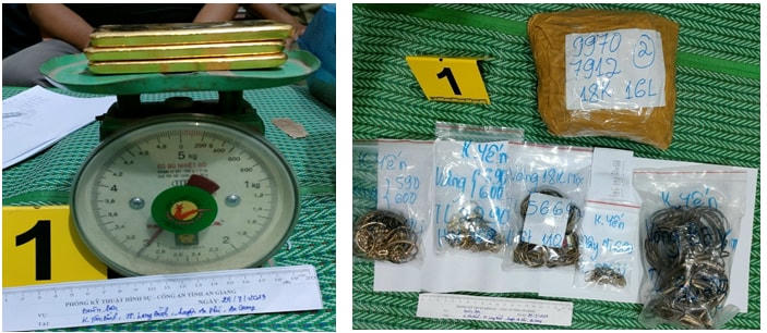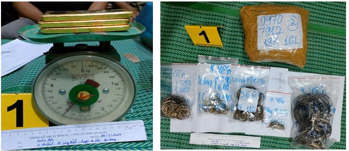 Từ lời khai của các đối tượng và tài liệu, chứng cứ thu thập được, Cơ quan CSĐT Công an tỉnh đã ra 8 Lệnh và tổ chức khám xét khẩn cấp đối với chỗ ở, nơi làm việc của các đối tượng có liên quan, tạm giữ nhiều thỏi kim loại màu vàng và đồ nữ trang (tổng trọng lượng khoảng 14kg).