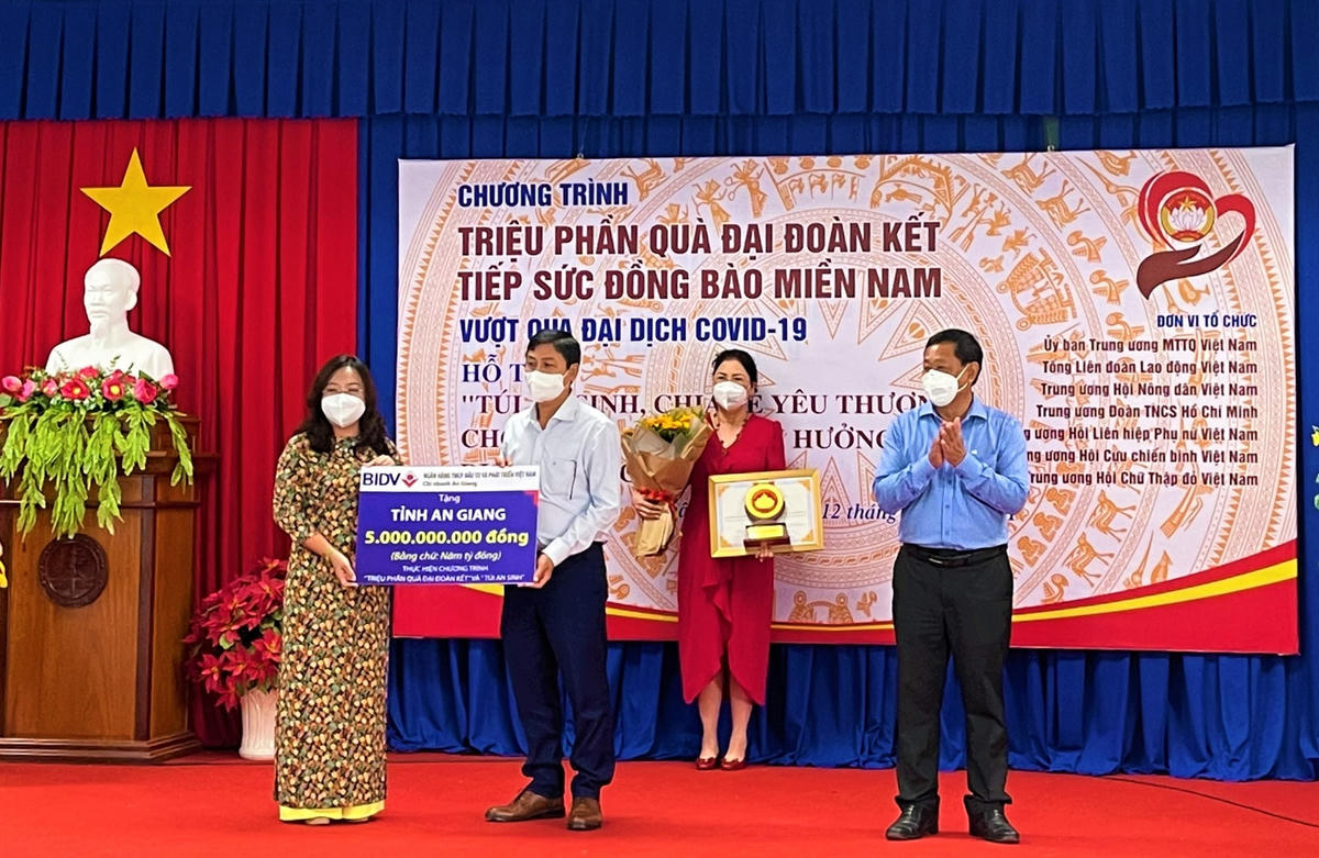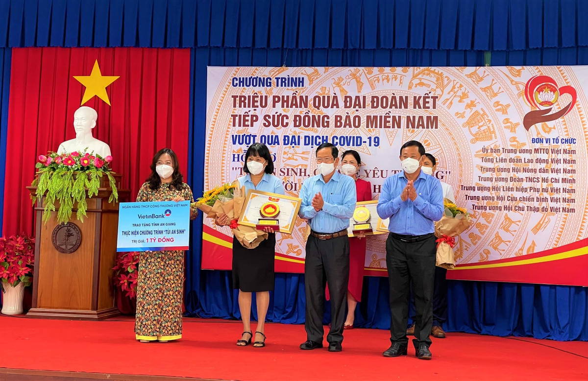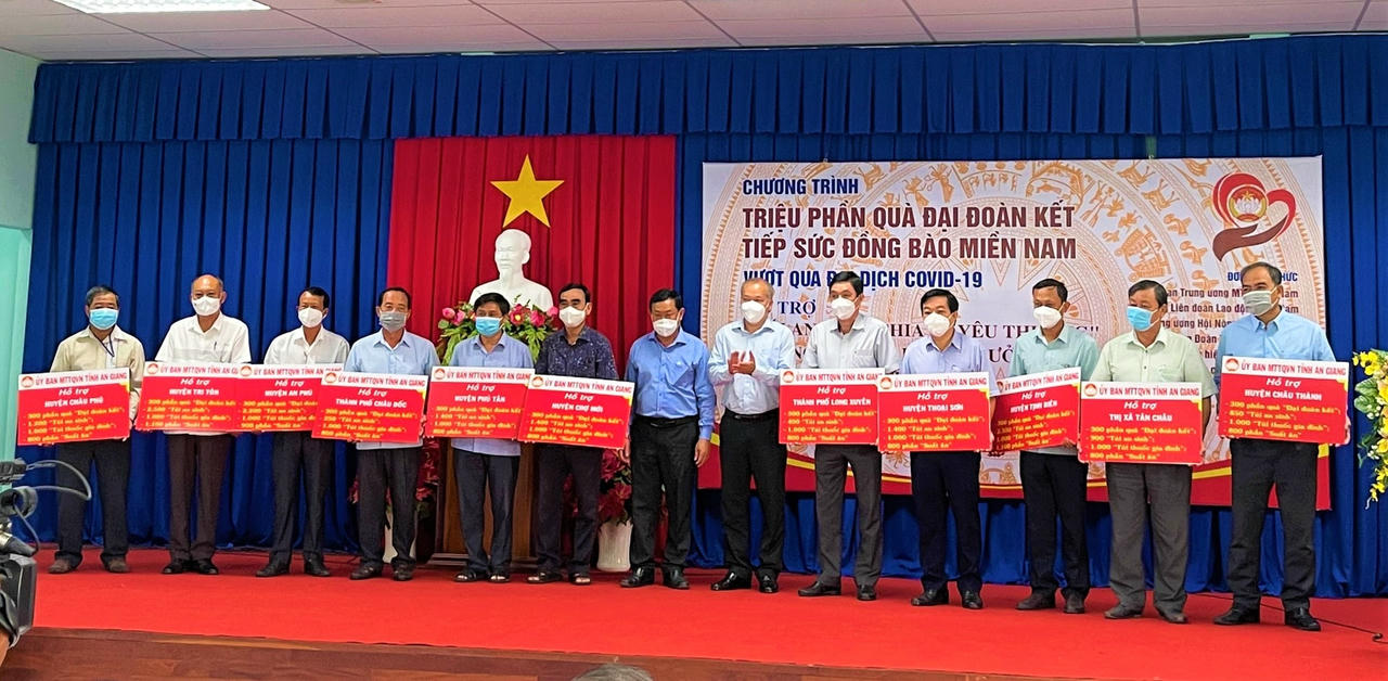 Ngày 12/10, UBMTTQ Việt Nam tỉnh An Giang tổ chức chương trình, "Triệu phần quà Đại đoàn kết tiếp sức đồng báo Miền Nam vượt qua đại dịch Covid-19” và “Túi an sinh, chia sẻ yêu thương” cho người dân bị ảnh hưởng dịch Covid-19.