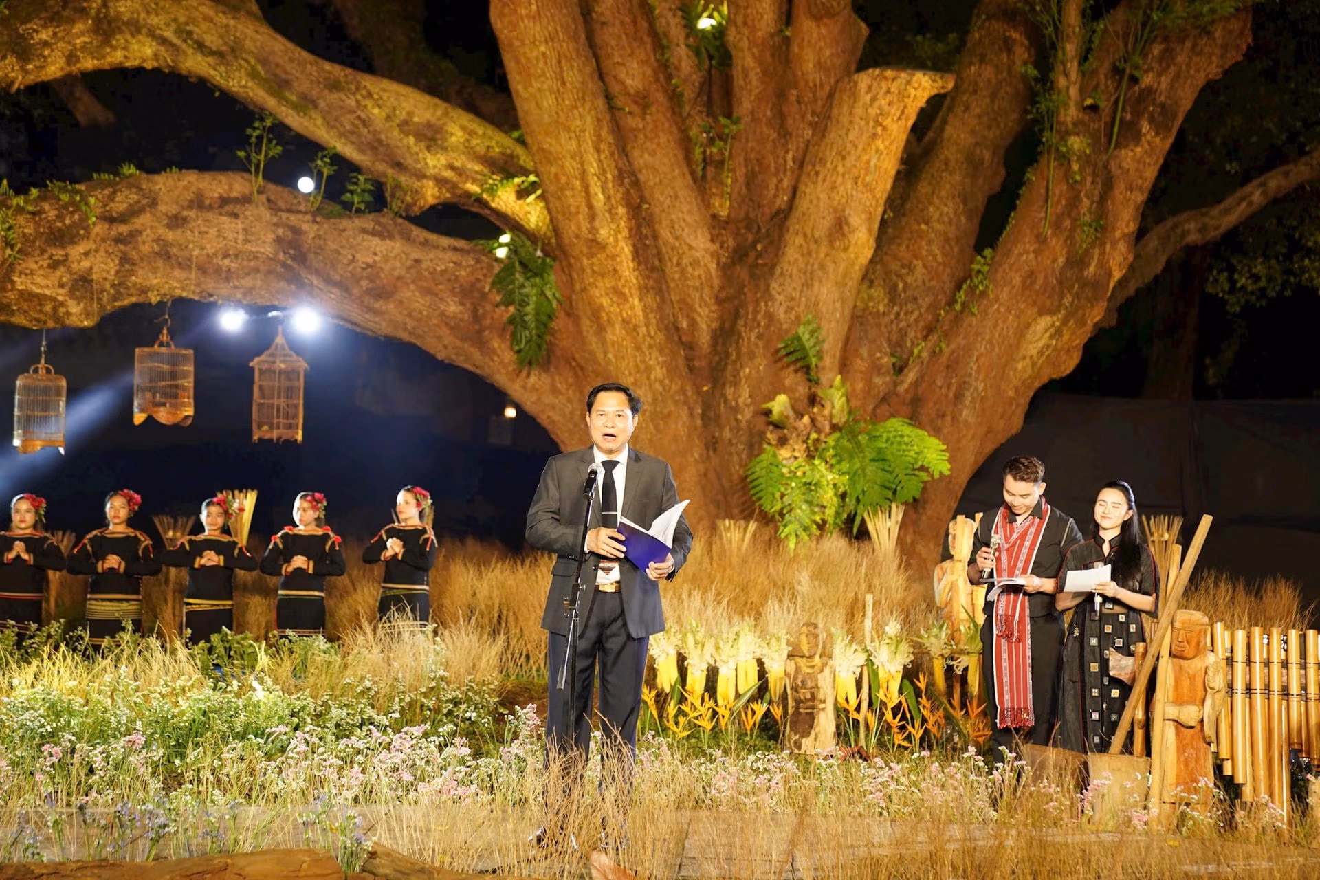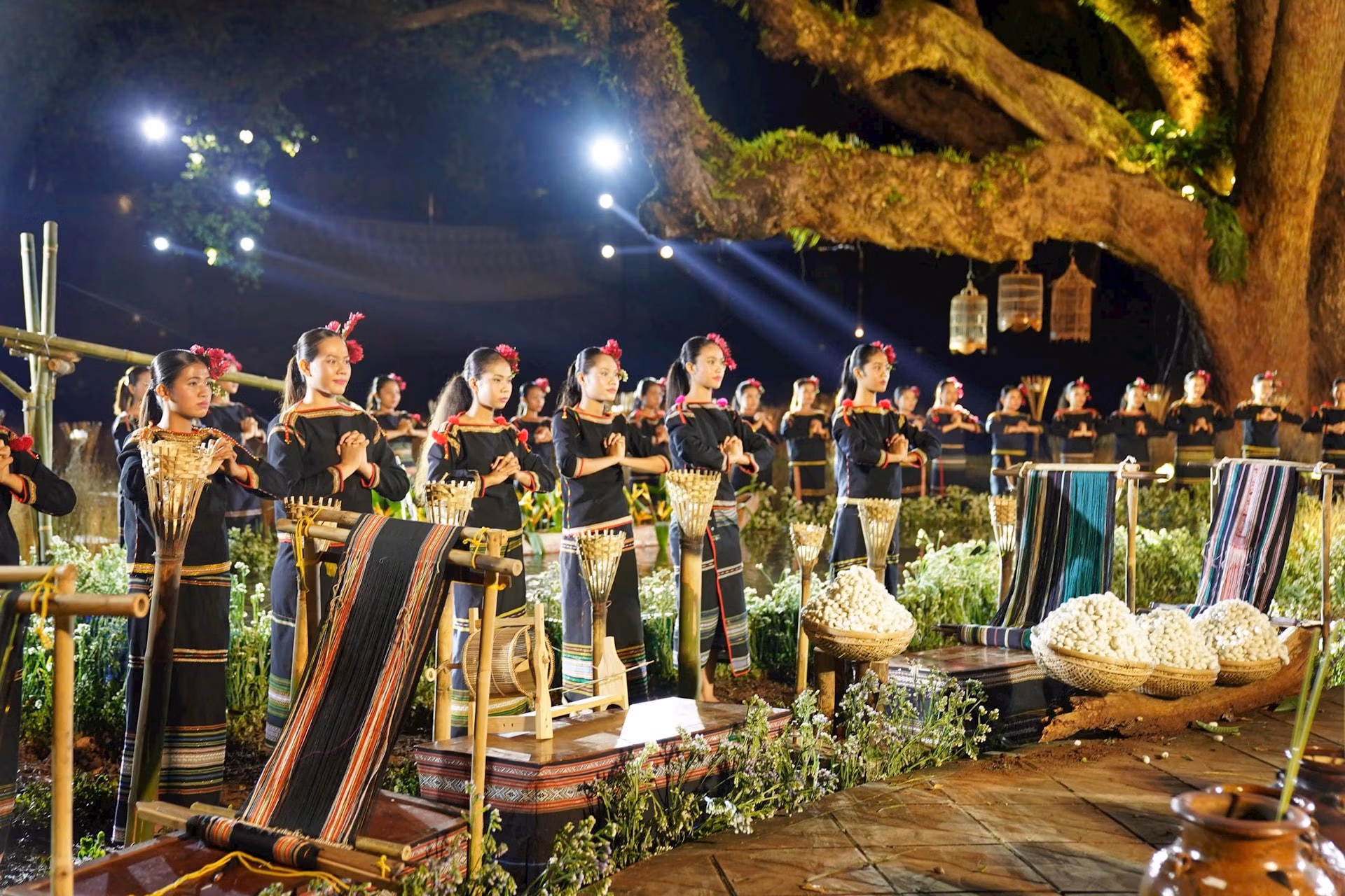 Chương trình diễn ra dưới tán cây Long Não cổ thụ trong khuôn viên Biệt Điện Bảo Đại, TP Buôn Ma Thuột. Trong không gian huyền ảo, đầy màu sắc và âm thanh, khán giả được thưởng thức chương trình nghệ thuật và trình diễn thời trang qua các bộ sưu tập thời trang áo dài kết hợp thổ cẩm các dân tộc như Ê Đê, Bana, Jarai…do nhà thiết kế Đặng Thị Minh Hạnh thực hiện. Chương trình được dàn dựng công phu, kết hợp tái hiện các nghề thủ công truyền thống như dệt thổ cẩm, đan lát, tạc tượng, làm gốm,…