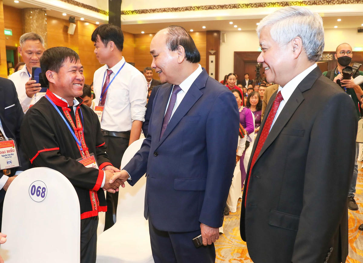 Tham dự Hội nghị có Ủy viên Bộ Chính trị, Chủ tịch nước Nguyễn Xuân Phúc; Ủy viên Bộ Chính trị, Thường trực Ban Bí thư Võ Văn Thưởng; nguyên Chủ tịch UBTƯ MTTQ Việt Nam Huỳnh Đảm; Bí thư Trung ương Đảng, Chủ tịch UBTƯ MTTQ Việt Nam Đỗ Văn Chiến; các Ủy viên Trung ương Đảng: ông Lê Tiến Châu, Phó Chủ tịch – Tổng Thư ký UBTƯ MTTQ Việt Nam; ông Lê Khánh Hải, Chủ nhiệm Văn phòng Chủ tịch nước; ông Trần Văn Sơn, Bộ trưởng, Chủ nhiệm Văn phòng Chính phủ; ông Phạm Tất Thắng, Phó Trưởng ban Thường trực Ban Dân vận Trung ương; ông Hầu A Lềnh, Bộ trưởng, Chủ nhiệm Ủy ban Dân tộc; ông Nguyễn Đình Khang, Chủ tịch Tổng Liên đoàn Lao động Việt Nam; ông Lương Quốc Đoàn, Chủ tịch Hội Nông dân Việt Nam; ông Chẩu Văn Lâm, Bí thư Tỉnh ủy Tuyên Quang; ông Nghiêm Xuân Thành, Bí thư Tỉnh ủy Hậu Giang; Thiếu tướng Nguyễn Văn Gấu, Phó Chủ nhiệm Tổng cục Chính trị Quân đội Nhân dân Việt Nam; cùng 299 điển hình xuất sắc, tiêu biểu là Chủ tịch MTTQ Việt Nam cấp xã và Trưởng ban Công tác Mặt trận của 63 tỉnh, thành phố trên cả nước.