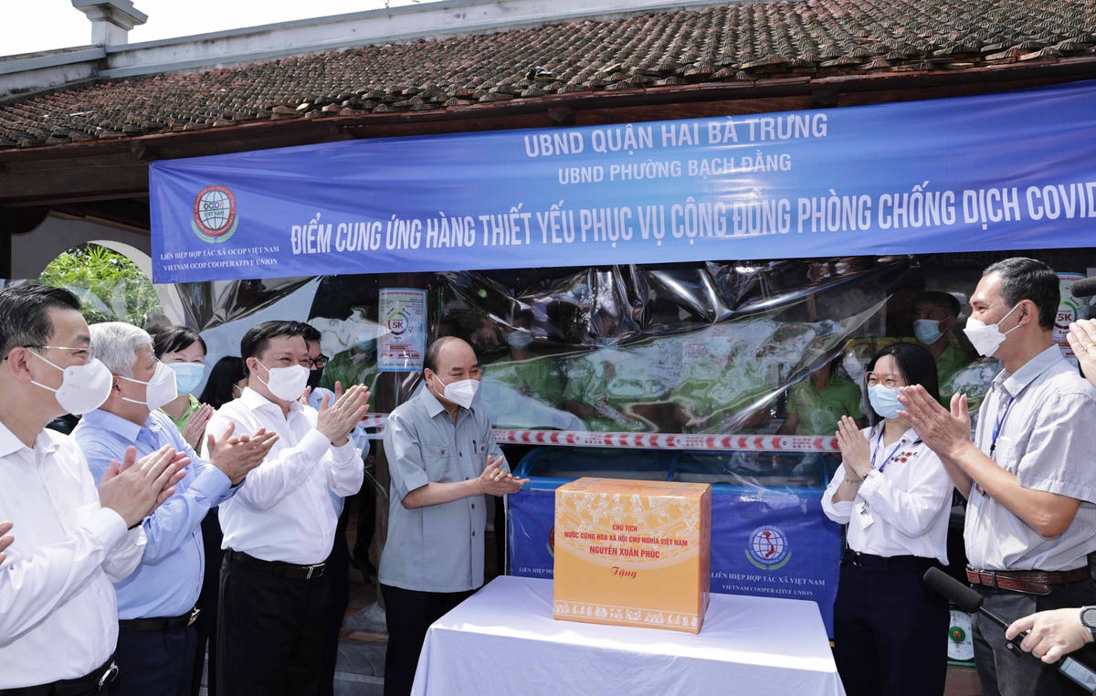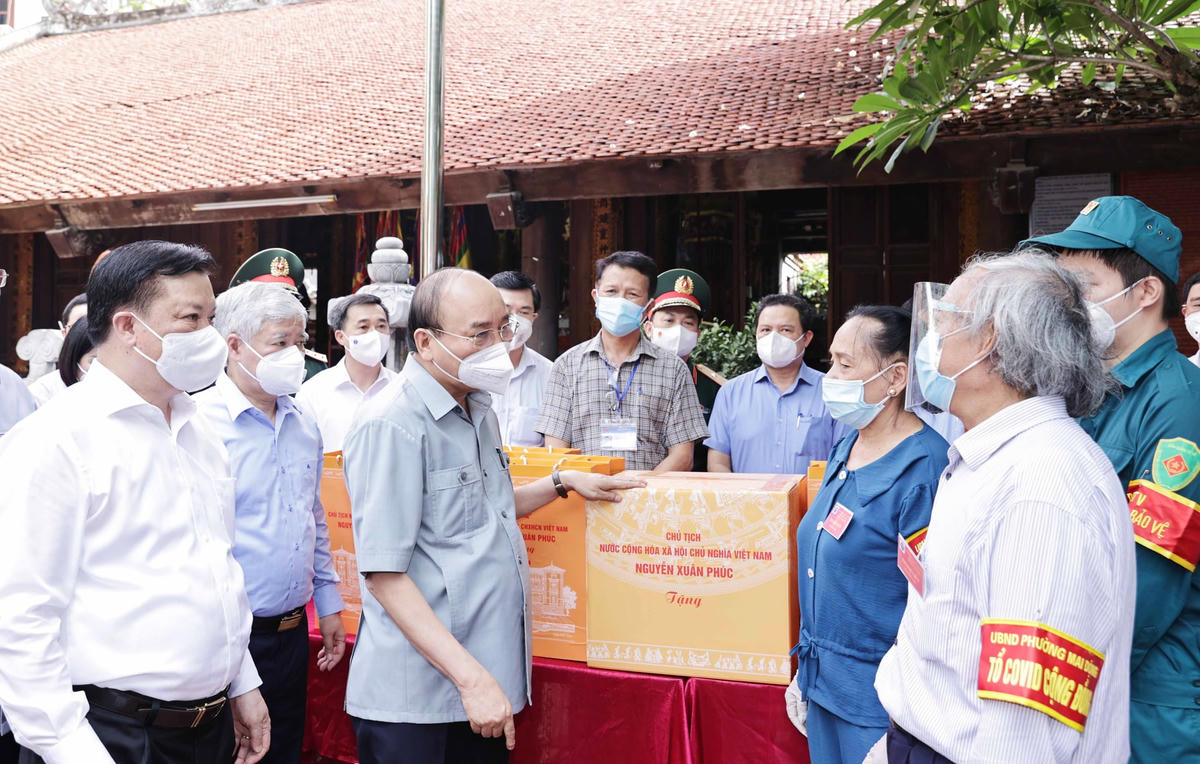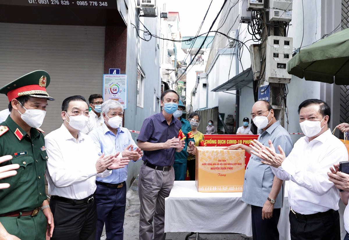 Sáng 13/8, Chủ tịch nước Nguyễn Xuân Phúc; Bí thư Trung ương Đảng, Chủ tịch UBTƯ MTTQ Việt Nam Đỗ Văn Chiến đã tới thăm, động viên cán bộ, chiến sĩ, nhân viên y tế cơ sở thu dung, điều trị bệnh nhân mắc Covid-19 và các khu dân cư thực hiện tốt “Vùng xanh” trên địa bàn Thủ đô Hà Nội.