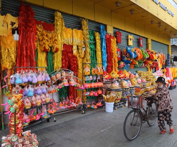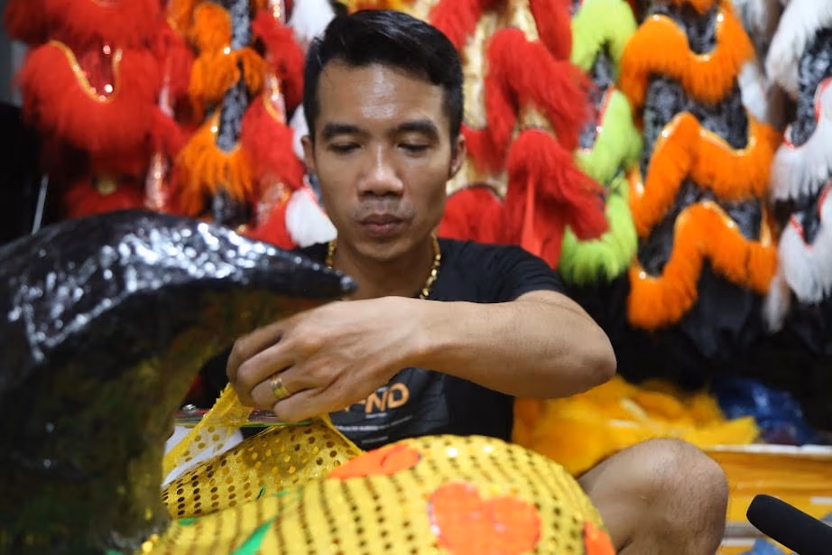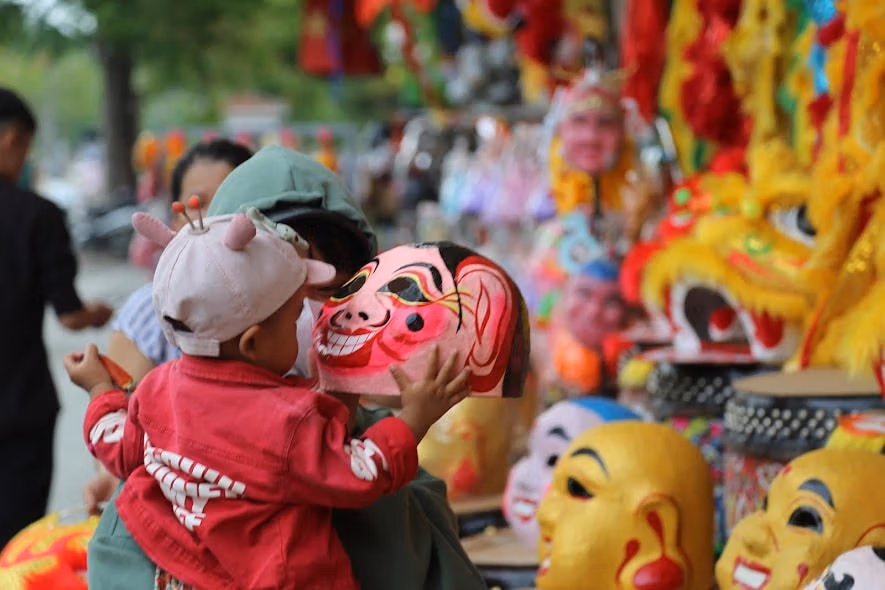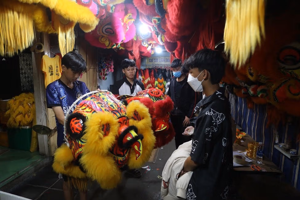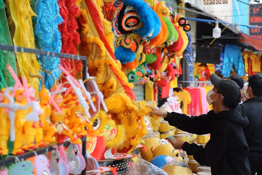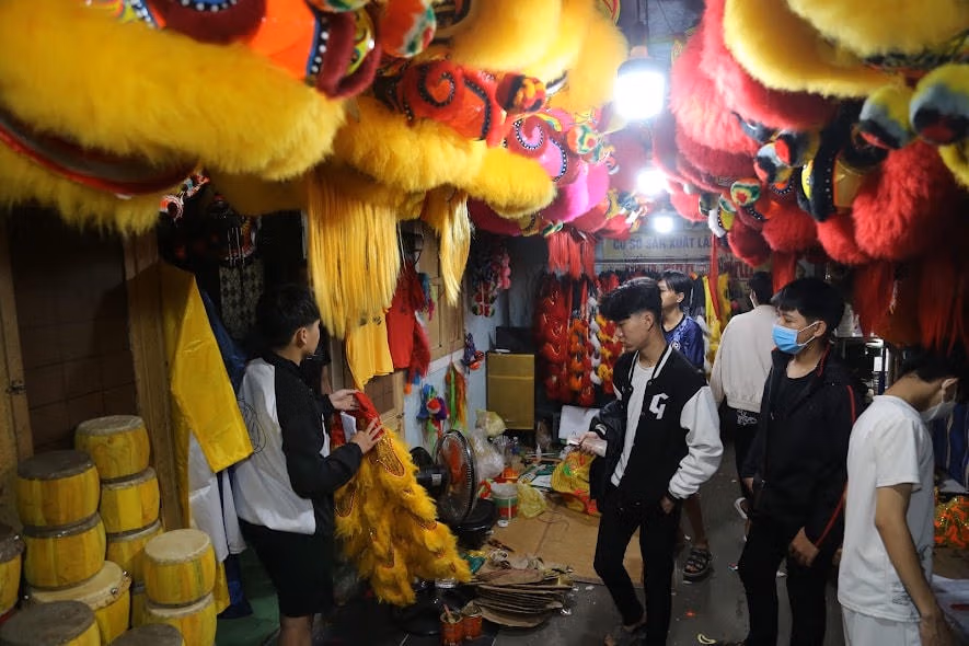[ẢNH] Đầu lân hút khách dịp Tết Trung thu Thứ Ba 30/08/2022 09:43 (GMT+7) Dịp Tết Trung thu năm nay, nhu cầu mua sắm đầu lân tại thành phố Huế (tỉnh Thừa Thiên - Huế) trở nên nhộn nhịp, đem lại thu nhập cao cho người dân sau 2 năm tạm lắng bởi dịch bệnh Covid-19. Sau thời gian bị ảnh hưởng bởi đại dịch Covid-19, dịp Tết Trung năm nay, cơ sở làm đầu lân Bảo Anh Đường (thành phố Huế) trở nên nhộn nhịp. Lượng người ra vào cơ sở này để tìm mua đầu lân trở nên nhộn nhịp.Ông Trương Như Rem (48 tuổi, chủ cơ sở làm đầu Lân Bảo Anh Đường) cho biết, công việc làm đầu Lân bắt đầu từ tháng 2 âm lịch hàng năm và xuyên suốt cho đến dịp Trung thu.“Để làm hoàn thiện một chiếc đầu lân, người thợ mất khoảng thời gian 7 ngày. Khâu khó nhất trong việc làm đầu lân chính là đan sườn và vẽ. Khó là vì đầu lân thường không có một khuôn mẫu cố định nào mà chính người thợ phải tự suy nghĩ, sáng tạo ra hình thù sao cho bắt mắt và ấn tượng”, ông Rem chia sẻ.Năm nay, lượng khách đến tìm mua đầu lân đông dần từ thời điểm tháng 6 Âm lịch. Hiện tại, khi Tết Trung thu đang cận kề, đa số các cơ sở đã dần ngưng sản xuất để tập trung vào công việc phân phối hàng ra thị trường.Tùy theo chủng loại lớn nhỏ mà giá thành của mỗi chiếc đầu lân khác nhau, dao động từ 45 ngàn đến 4,5 triệu đồng.Ông Rem cho biết, riêng tại cơ sở Bảo Anh Đường, năm nay đưa ra thị trường trong và ngoài tỉnh khoảng 500 đầu lân loại lớn, hàng nghìn đầu lân các loại khác nhau. Đây là tín hiệu rất đáng mừng sau 2 năm phải tạm lắng bởi dịch bệnh Covid-19.Ngoài làm đầu lân, các cơ sở cũng cung cấp các mặt hàng đạo cụ đi kèm như trống, thanh la, bộ đồ ông địa...Cùng với các cơ sở sản xuất đầu lân, thời điểm này tại các tuyến đường trung tâm thành phố Huế như đường Trần Hưng Đạo, Hùng Vương..., nhiều cửa hàng cũng bày bán các sản phẩm phục vụ Tết Trung thu.Các sản phẩm rất đa dạng, nhiều màu sắc tạo nên một không gian đầy sắc màu tại các khu phố giữa lòng thành phố Huế.Phụ huynh mua đầu lân làm quà cho con dịp Tết Trung thu.Một em nhỏ thích thú với chiếc mặt nạ ông địa tại một cửa hàng nằm trên đường Trần Hưng Đạo, thành phố Huế.Được biết, theo thời gian hiện trên địa bàn thành phố Huế, tỉnh Thừa Thiên - Huế còn khoảng vài cơ sở vẫn duy trì nghề làm đầu lân phục vụ nhu cầu của người dân. Nguyễn Quốc