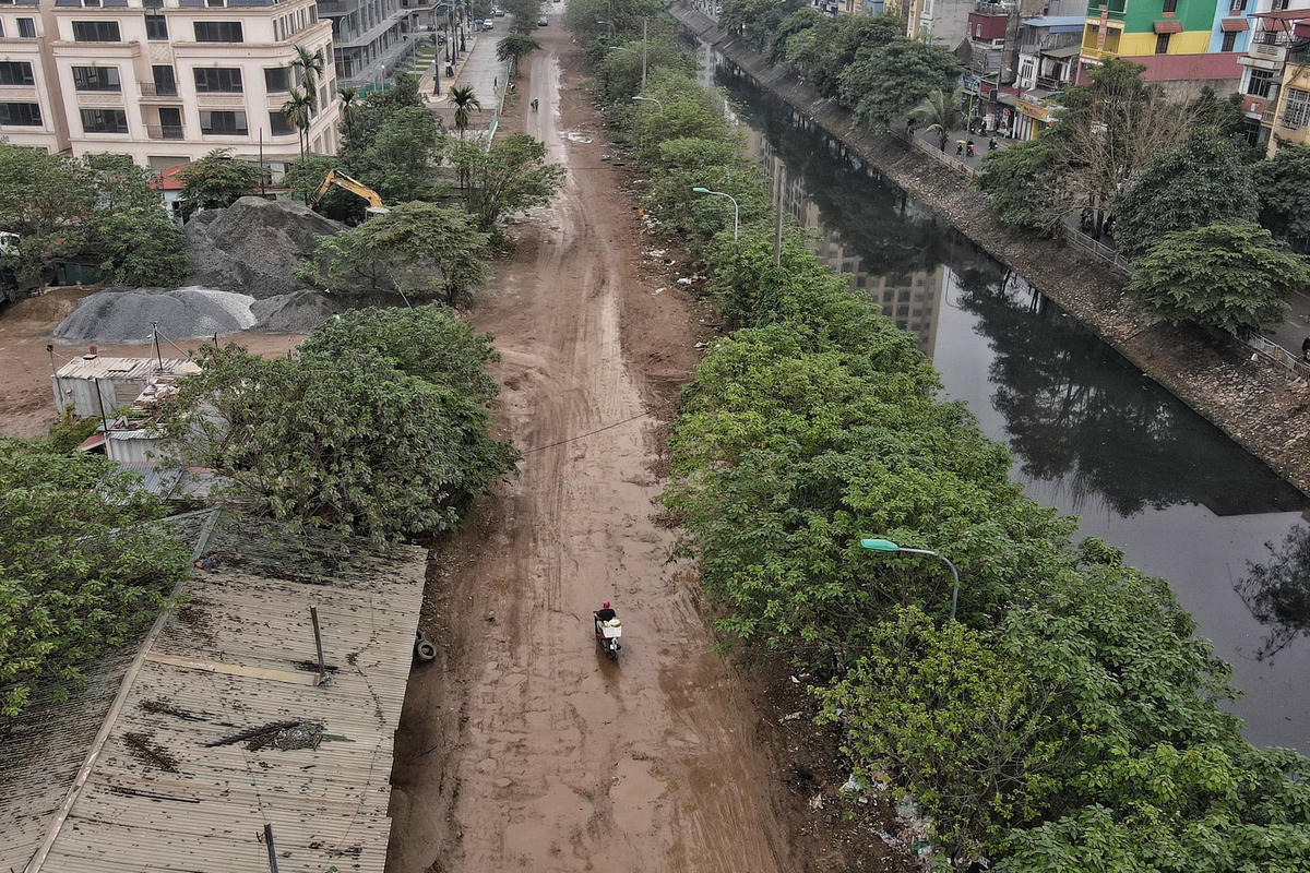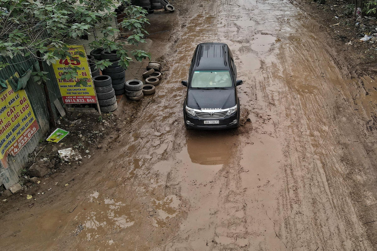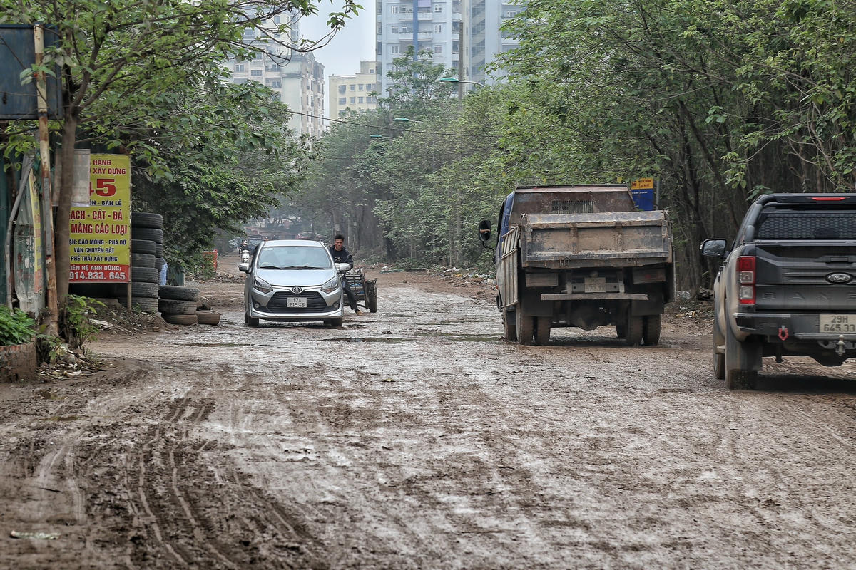 Đoạn đường chỉ dài khoảng 500 m nối từ phố Nguyễn Cảnh Dị đến cầu Định Công (Hoàng Mai, Hà Nội) được ví như con đường "đau khổ" bởi chít ổ gà, sình lầy... khiến việc đi lại của người dân gặp nhiều khó khăn.