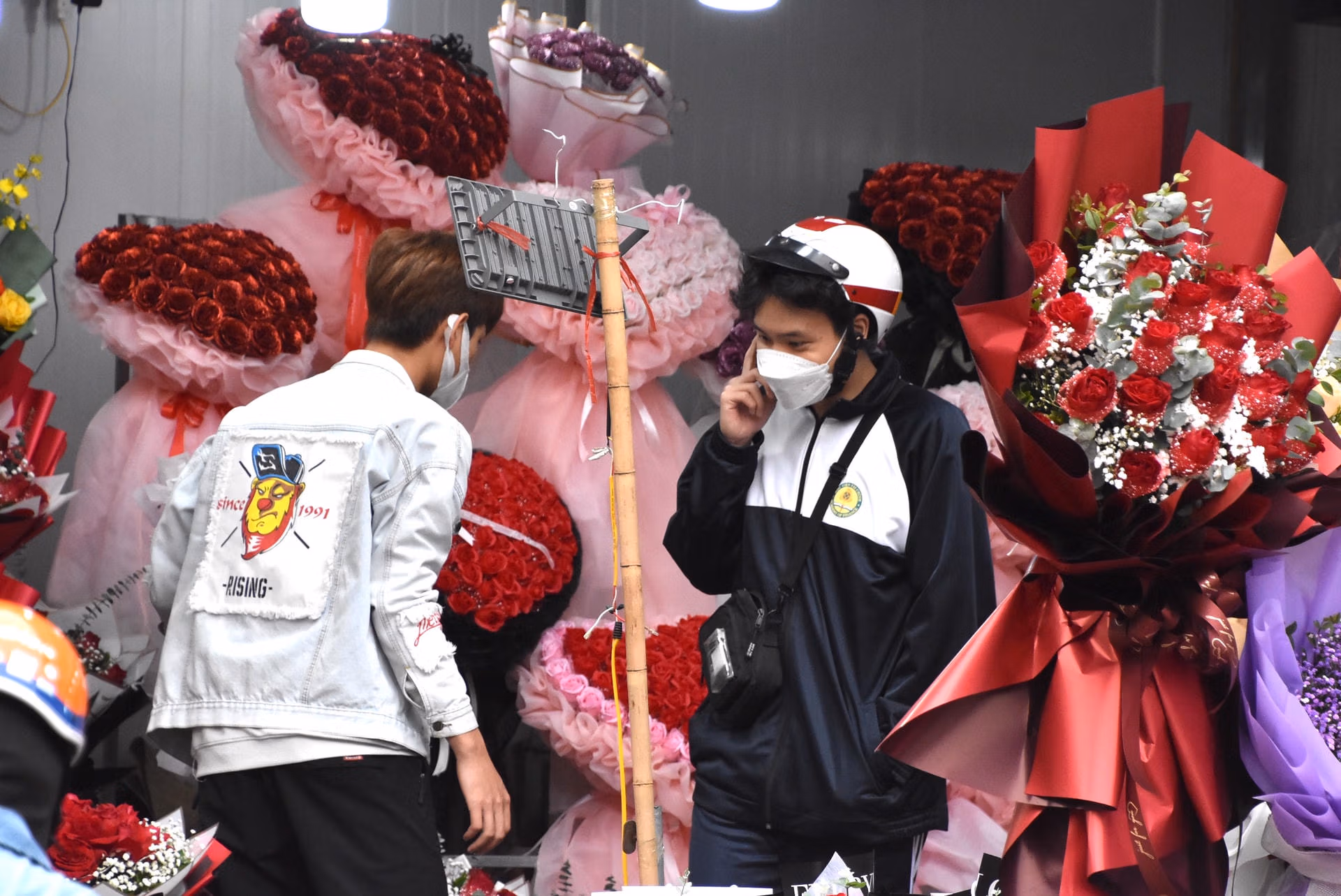 [ẢNH] Đường phố Hà Nội ngập sắc hoa tươi ngày lễ tình nhân 14-2 Thứ Ba 14/02/2023 14:30 (GMT+7) Hôm nay (14-2), thị trường hoa tươi tại Hà Nội trở nên sôi động trong ngày lễ tình nhân. Theo ghi nhận của PV Báo Đại Đoàn Kết, nhiều cửa hàng hoa tươi tại Hà Nội "mạnh tay" nhập hàng với số lượng lớn để phục vụ nhu cầu của người dân.Trên đường Nguyễn Phong Sắc (Cầu Giấy), không khí mua sắm hoa, quà tặng Valentine có phần sôi động hơn hẳn ngày thường.Chị Thu Hà, chủ một tiệm hoa tại đây cho biết, để đáp ứng nhu cầu mua hoa tươi ngày lễ tình nhân, chị đã nhập hoa với số lượng lớn hơn 30% so với ngày thường. Tuy nhiên giá hoa nhập năm nay cao hơn hẳn so với mọi năm nên giá bán cũng có phần tăng mạnh. Các loại hoa bán chủ yếu trong ngày này là hoa hồng. Tuy nhiên theo chị Hà, nắm bắt được nhu cầu chi tiêu không được "mạnh tay" của khách hàng năm nay nên các loại hoa nhập chỉ ở mức trung bình, chị nhập rất ít hoa hồng cao cấp. Nguyễn Văn An (21 tuổi, Cầu Giấy) cho hay: "Ba năm nay, năm nào em cũng mua hoa để tặng người yêu nhưng năm nay thấy giá hoa cao hơn hẳn so với mọi năm. Vậy nên em chỉ dám chọn những bó nhỏ với mức giá dưới 500.000 đồng". Cũng theo đánh giá của nhiều chủ cửa hàng hoa tươi, năm nay sức mua của khách hàng có phần trầm lắng hơn so với mọi năm, đồng thời người dân cũng có xu hướng chọn hoa với mức giá dưới 1 triệu đồng/bó.Bên cạnh đó, các loại hoa hồng nhập bán chậm hơn so với mọi năm.Cùng với hoa tươi, các loại socola quà tặng cũng được bày bán rất nhiều trong ngày lễ tình nhân.Với đa dạng mẫu mã, mức giá,...Ngoài những bó hoa được bó thông thường, hoa hồng bó thành hình trái tim cũng được nhiều cửa hàng bày bán với mức giá từ 800.000 - 1.500.000 đồng/bó.Hoa tươi cũng được bày bán rất nhiều trên các tuyến phố. Hoàng Chiến