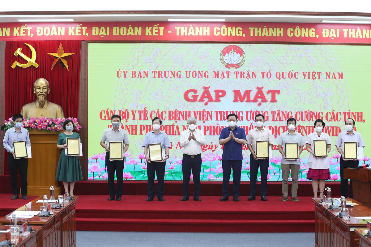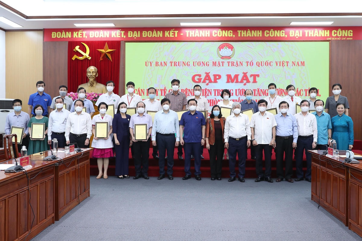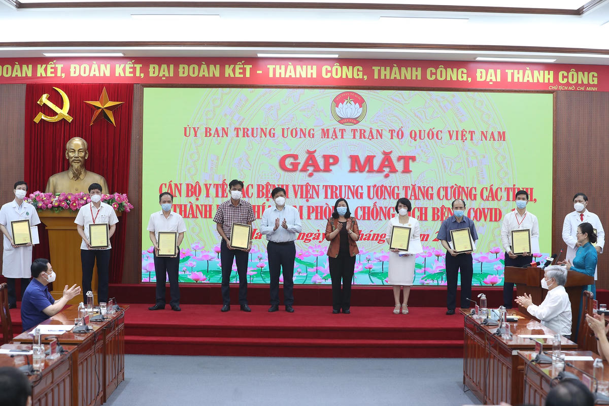 Chiều 4/8, UBTƯ MTTQ Việt Nam đã tổ chức buổi gặp mặt, tri ân và động viên kịp thời cán bộ y tế các bệnh viện Trung ương tăng cường các tỉnh, thành phố phía Nam phòng, chống dịch Covid-19.