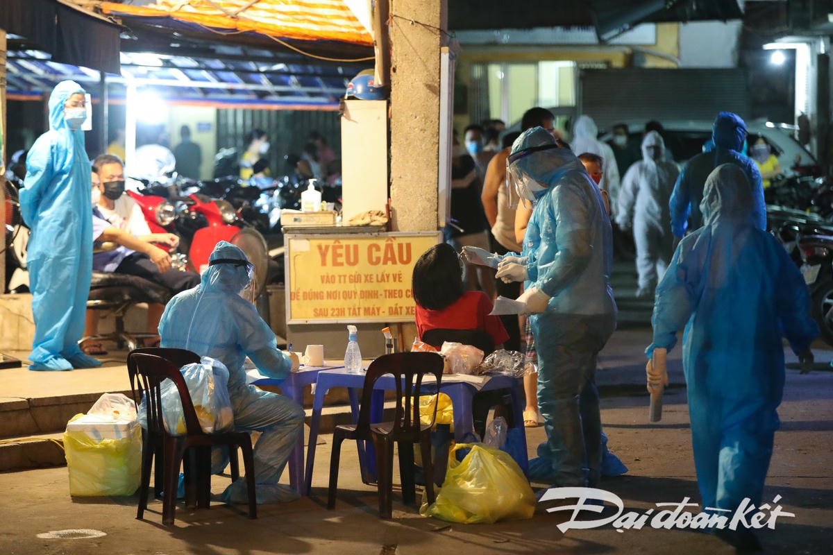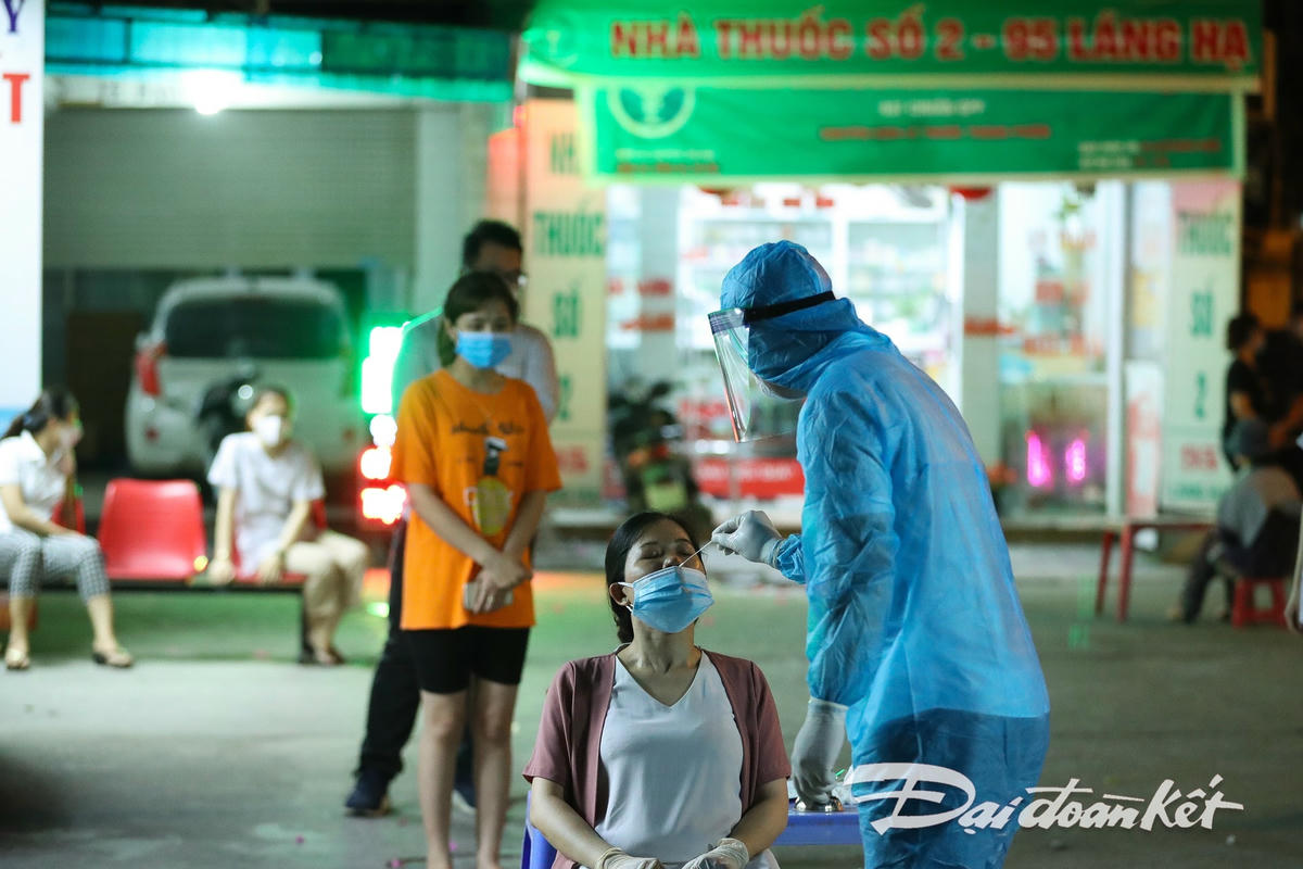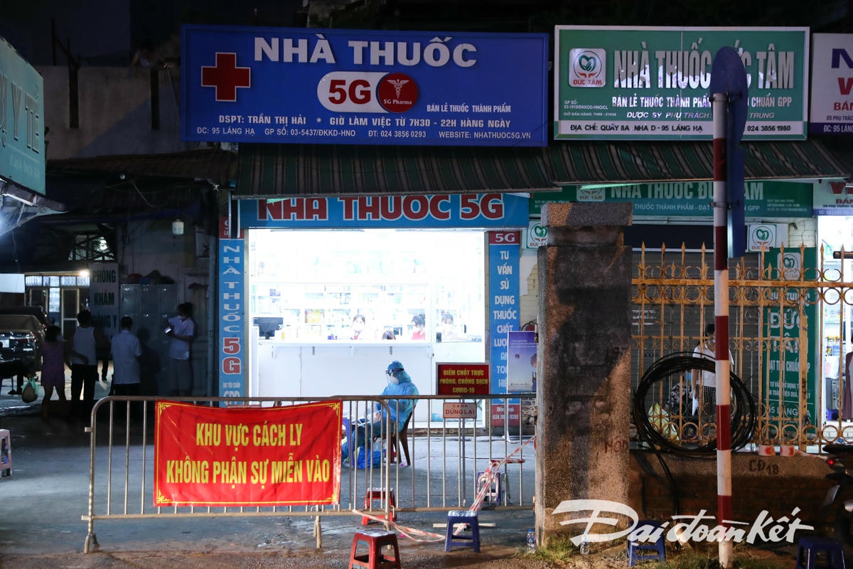 Tối muộn ngày 19/7, Trung tâm y tế quận Đống Đa đã tiến hành lấy mẫu xét nghiệm các trường hợp liên quan tại khu vực Nhà thuốc Đức Tâm, 95 Láng Hạ, quận Đống Đa, Hà Nội.