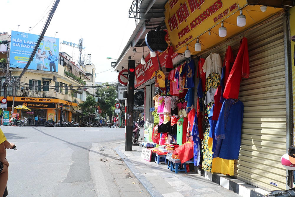 Từ sáng sớm, đã có nhiều cửa hàng mở cửa bày hàng ra để bán, anh Hậu, chủ một tiệm bán đồ chơi thở dài: “Dịch thế này ít ai ra đường lắm. Dạo này hàng quán ế ẩm, tầm này các năm trước tất bật dọn dọn hàng từ sớm, còn năm nay chỉ lẻ tẻ đôi khách hàng ghé thôi".