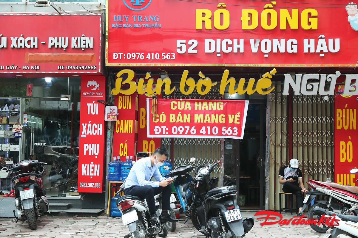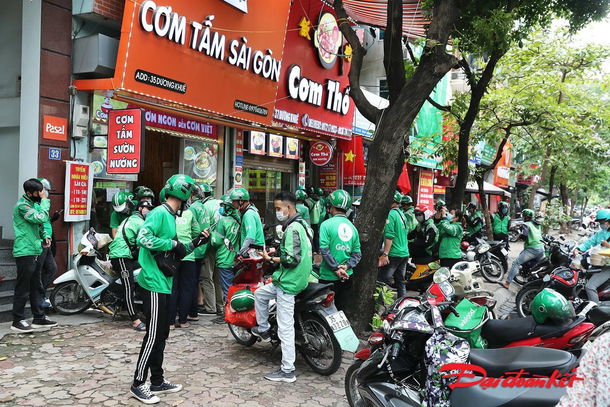 Theo ghi nhận của phóng viên Báo Đại Đoàn Kết, trong buổi sáng ngày 25/5, các nhà hàng, cơ sở ăn uống đã treo biển phục vụ mang về. Một số các cửa hàng đã và đang sử dụng các ứng dụng bán hàng như Grab, Baemin, Now,… có số lượng đơn tăng đột biến. Các tài xế phải xếp hàng chờ đến lượt.