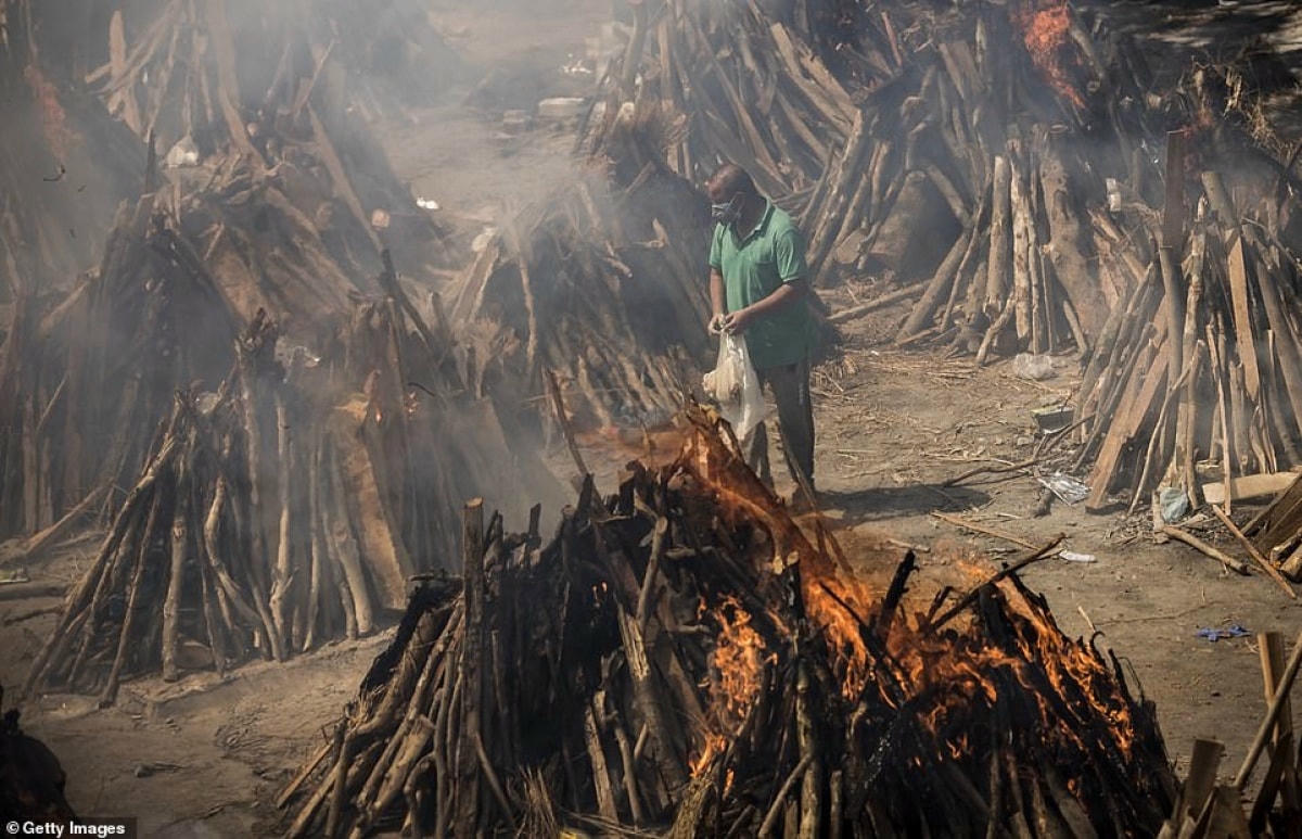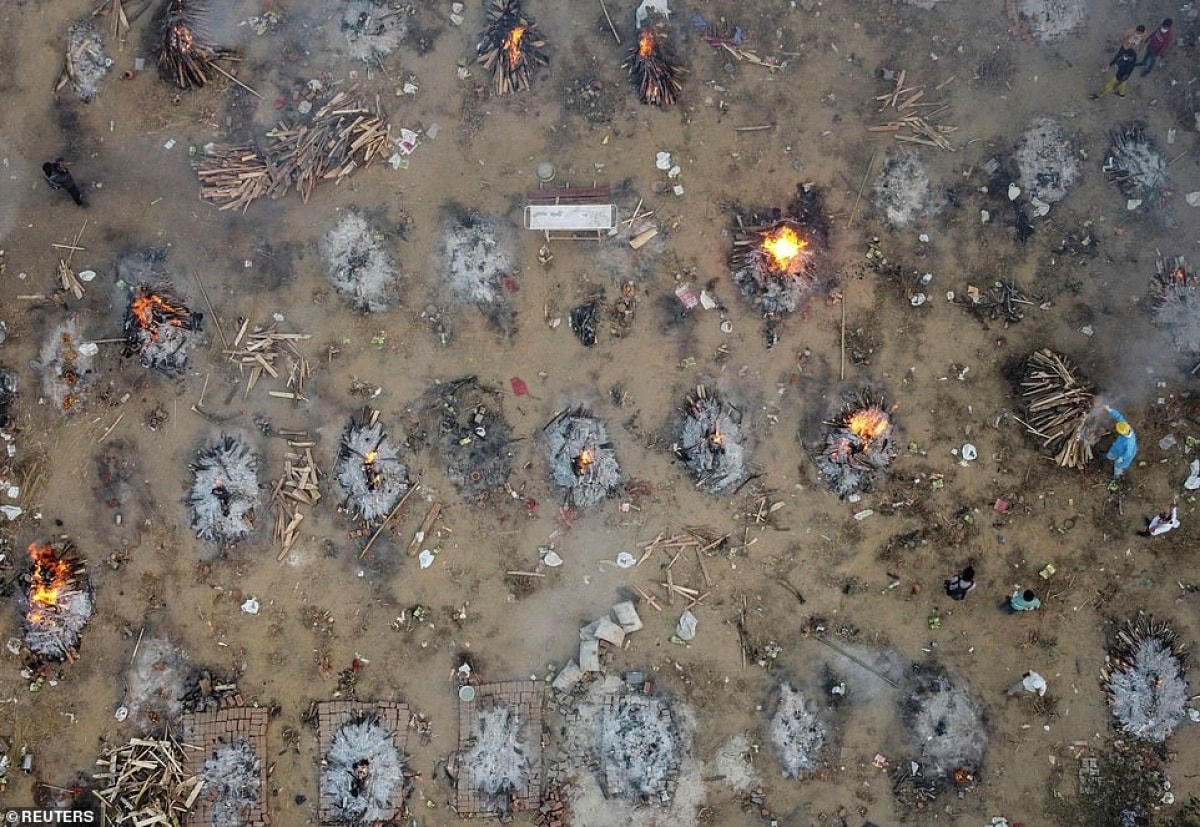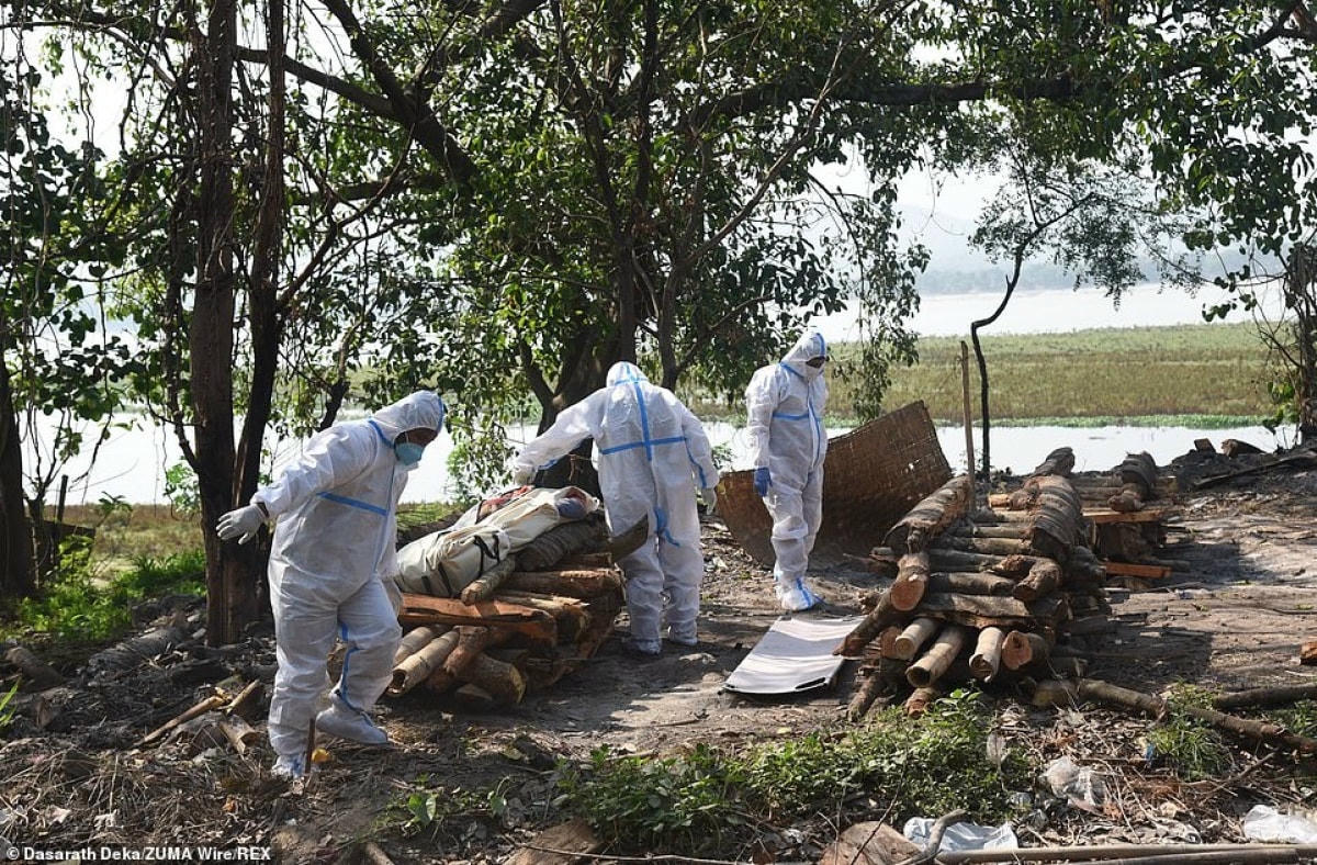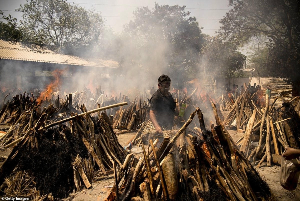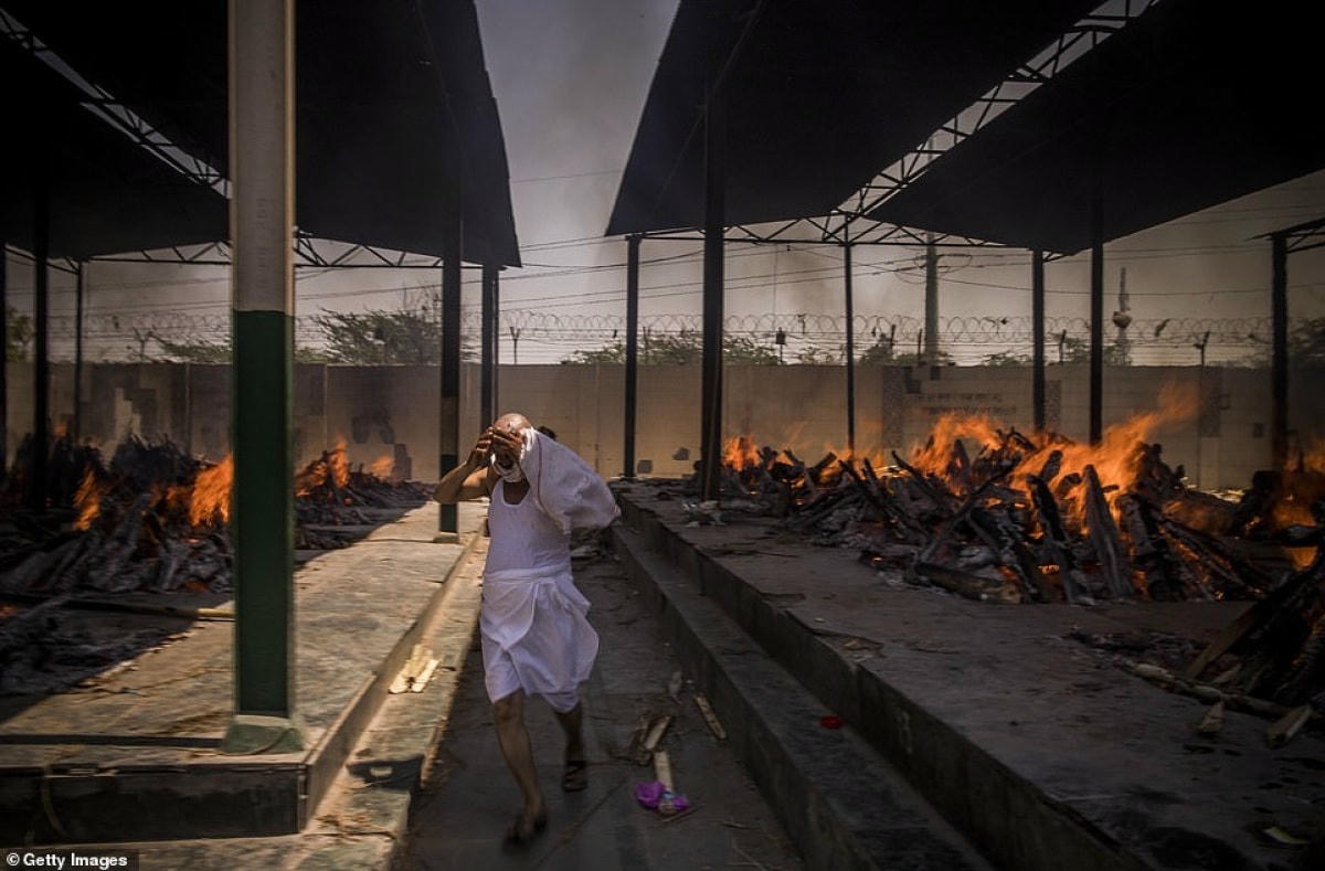 Đại dịch Covid-19 ở Ấn Độ đã tiến đến một giai đoạn mới, khiến hệ thống y tế tại đây quá tải, nhiều người chết do thiếu bình oxy. Các nạn nhân tử vong được hỏa táng bằng củi tại các bãi hỏa thiêu ngoài trời.