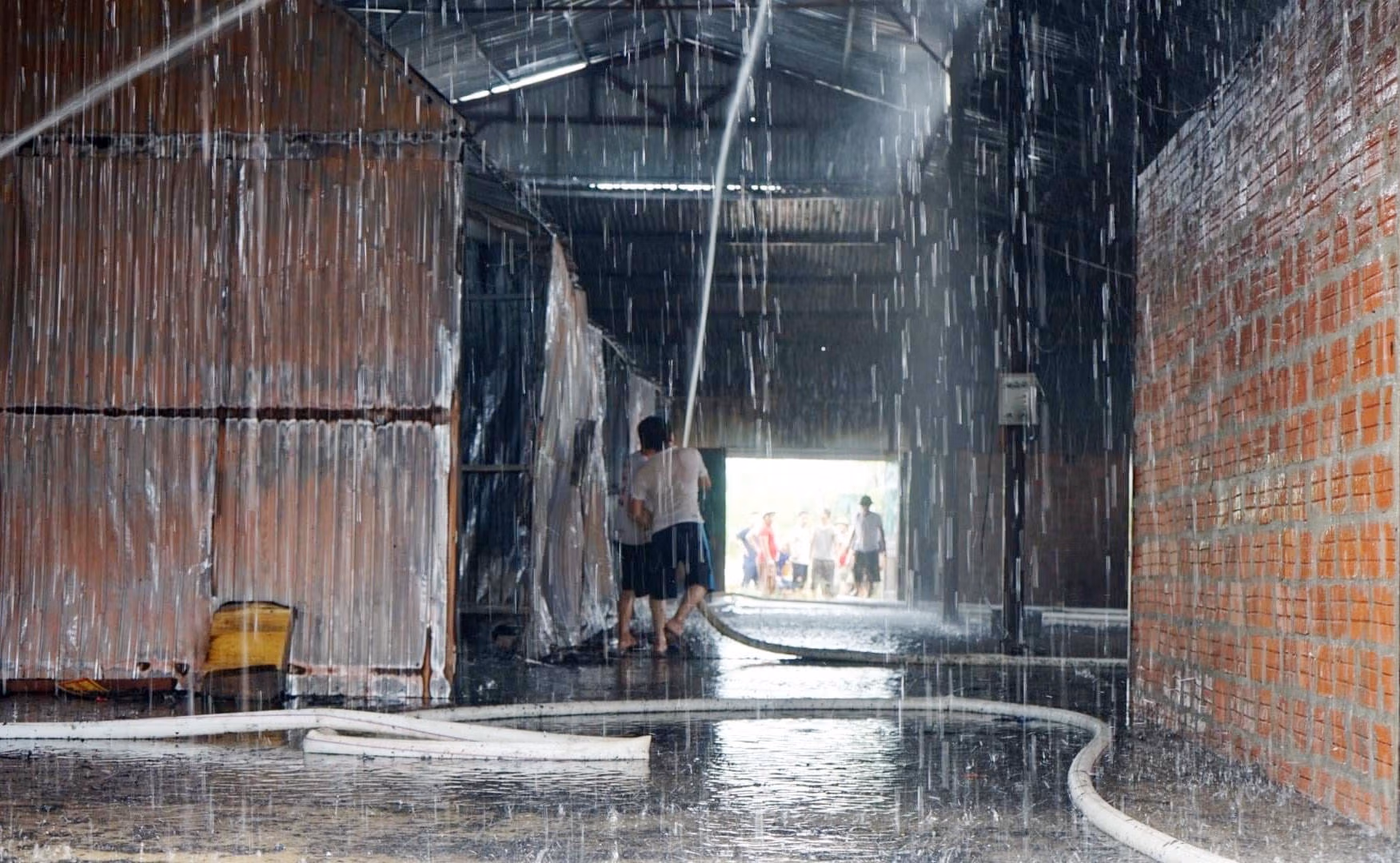 Người dân gần đó cùng các công nhân đang làm việc tại nhà xưởng nhanh chóng phối hợp để di chuyển các vật dụng, tài sản ra ngoài đồng thời tiến hành các biện pháp chữa cháy.
