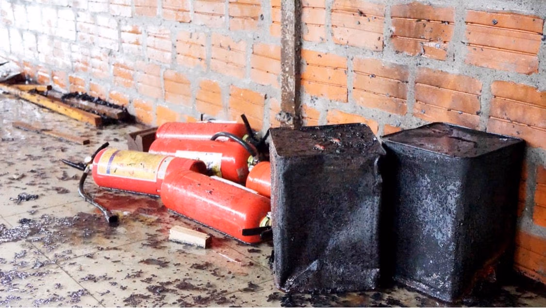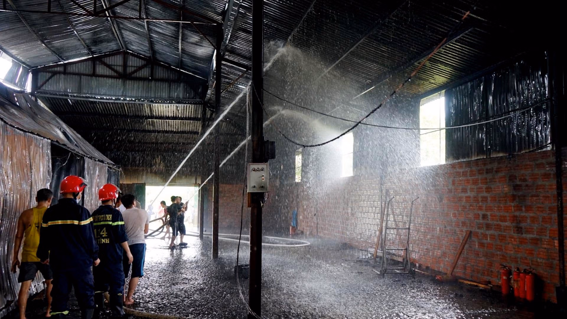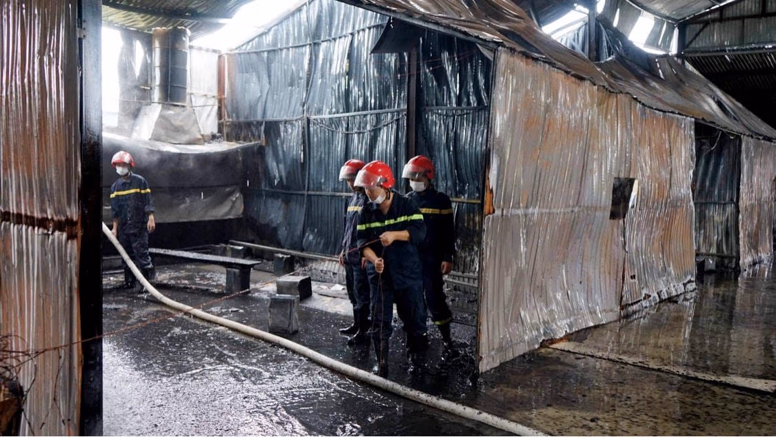 “Do thông tin muộn nên khi đến nơi, thấy cơ sở triển khai 5 lăng, 4 bình MSZ4 và 1 bình MT3 khống chế cơ bản được đám cháy, đơn vị đã kiểm tra xem nơi nào còn hiện tượng cháy để dập tắt triệt để, đồng thời tiến hành làm sạch cơ sở phun sơn và hướng dẫn khắc phục các tàn dư của đám cháy'', Đại úy Hùng thông tin.