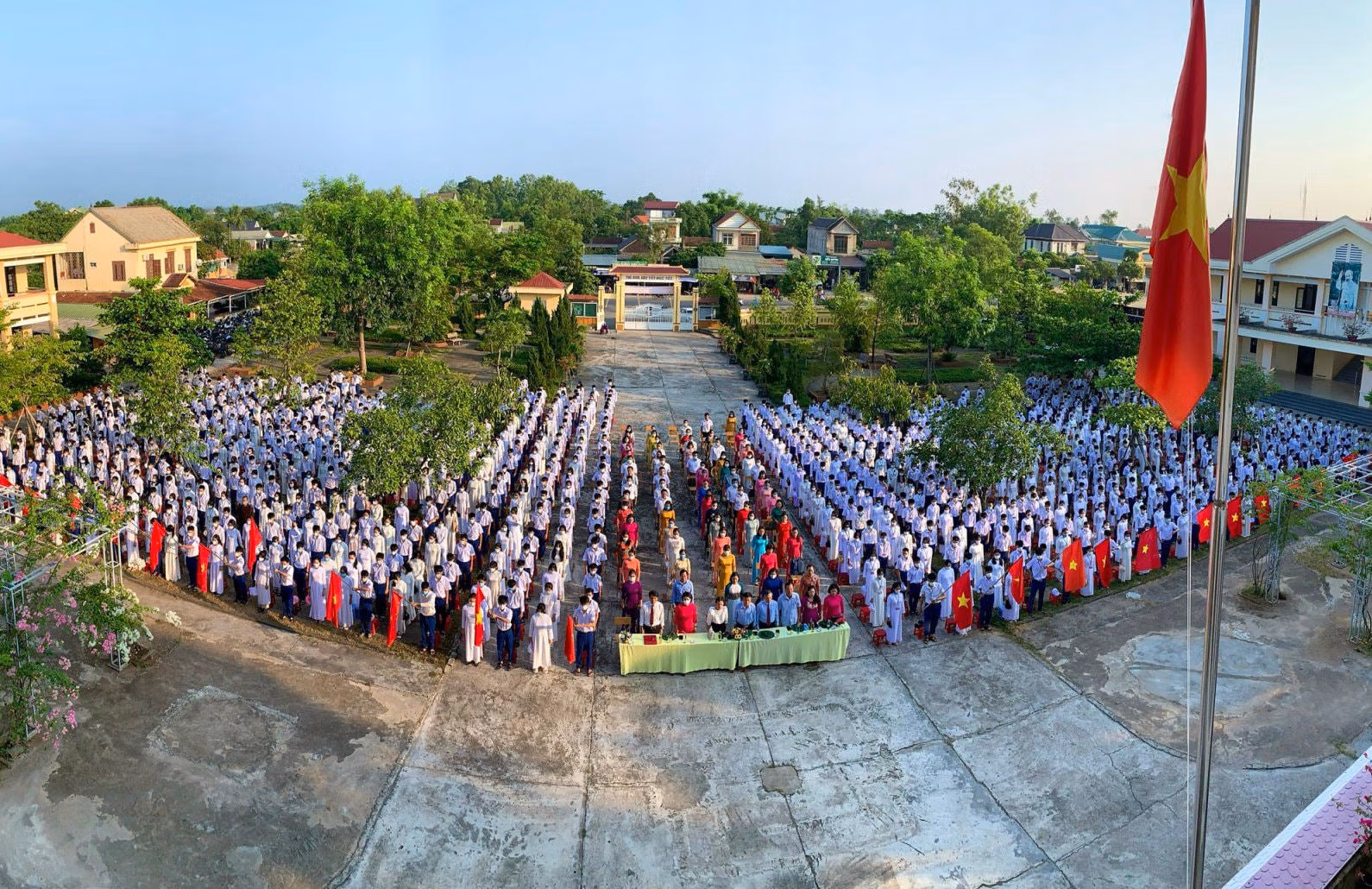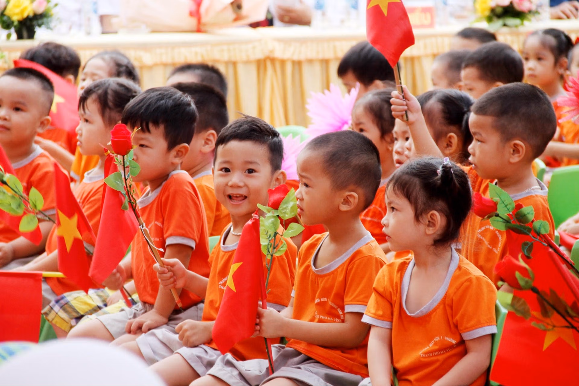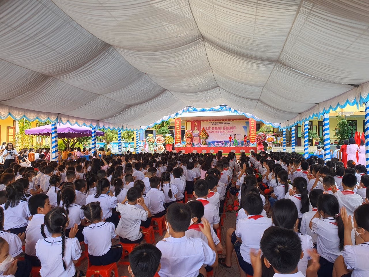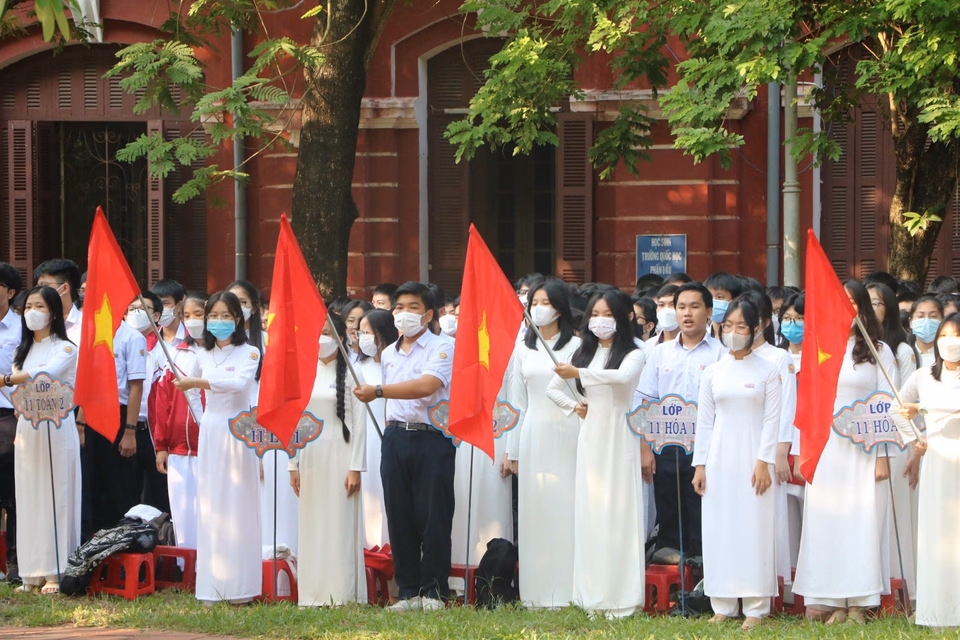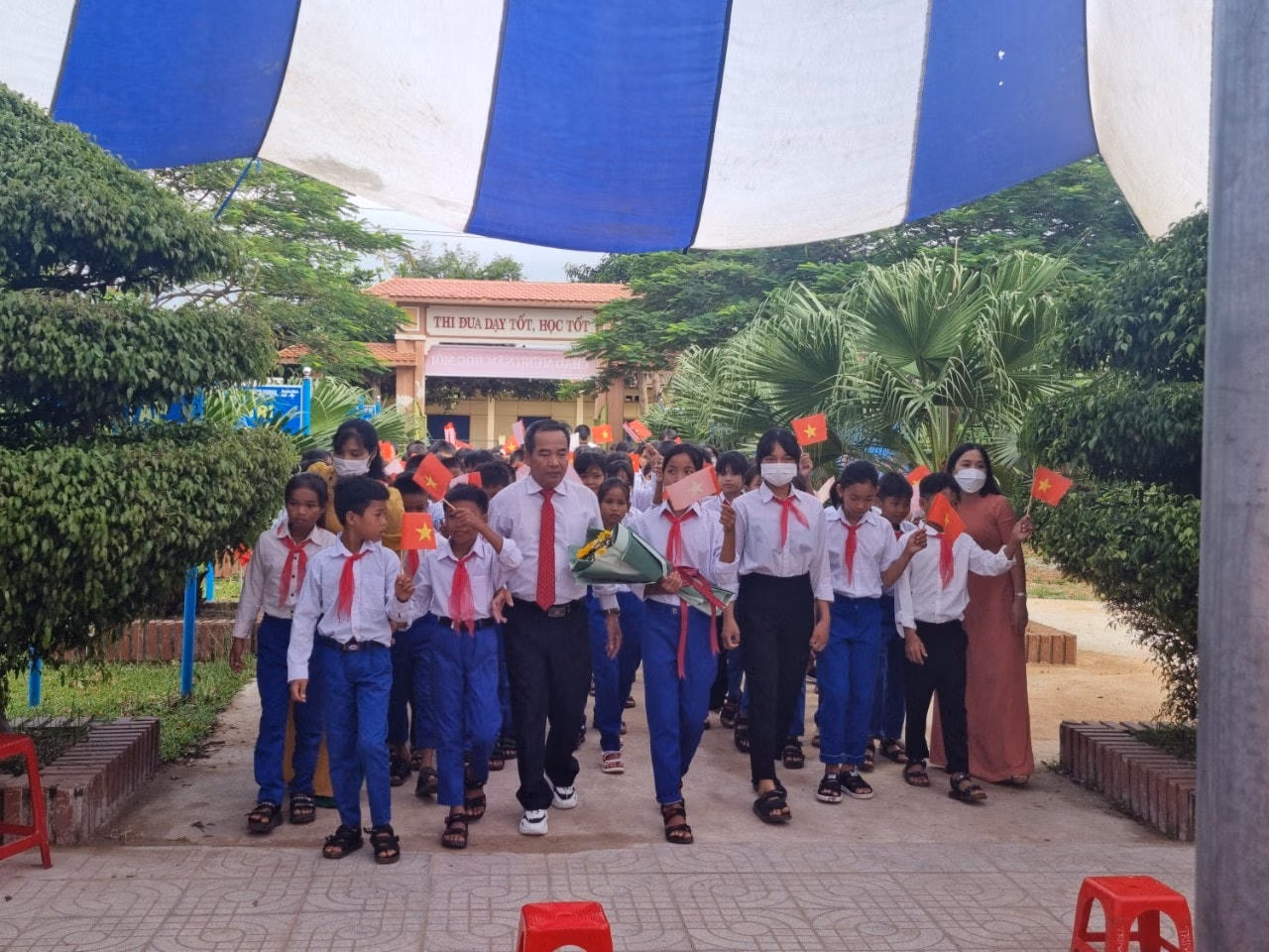 [ẢNH] Học sinh các tỉnh miền Trung nô nức đến trường Thứ Hai 05/09/2022 10:43 (GMT+7) Hoà chung không khí tựu trường của cả nước, sáng 5/9, hàng trăm nghìn học sinh các tỉnh Trung Trung Bộ nô nức đến trường, dự lễ khai giảng năm học mới 2022-2023. Sáng 5/9, khoảng 280.000 học sinh thuộc các cấp học trên địa bàn tỉnh Thừa Thiên - Huế đến trường dự lễ khai giảng năm học mới.Ông Nguyễn Văn Phương, Chủ tịch UBND tỉnh Thừa Thiên - Huế đã đến dự lễ khai giảng và chia vui với thầy cô giáo cùng học sinh trường THPT chuyên Quốc học Huế. Đây là ngôi trường giàu truyền thống trong công tác dạy và học.Năm học 2022-2023, trường THPT chuyên Quốc học Huế đón 420 học sinh khối 10 trúng tuyển vào trường. Những năm qua, trường THPT chuyên Quốc học Huế đã khẳng định tầm vóc, danh tiếng của một ngôi trường giàu truyền thống bậc nhất của xứ Huế.Tại tỉnh Quảng Trị, trong sáng nay các cơ sở giáo dục mầm non, tiểu học, THCS, THPT và giáo dục thường xuyên trên địa bàn tỉnh Quảng Trị tổ chức khai giảng năm học mới 2022 - 2023.Sở Giáo dục và Đào tạo tỉnh Quảng Trị cho biết, trong năm học 2022 - 2023, toàn tỉnh có 399 trường (công lập 378 trường, tư thục 21 trường).Trong năm học 2022-2023, toàn tỉnh Quảng Trị có 170.039 học sinh. Toàn tỉnh hiện có 14.066 cán bộ quản lý, giáo viên, nhân viên.Cùng ngày, ngành giáo dục Quảng Bình đã tổ chức lễ khai giảng năm học mới 2022-2023 với phương châm đổi mới sáng tạo, nâng cao chất lượng giáo dục.Theo Sở Giáo dục và Đào tạo tỉnh Quảng Bình, thời gian qua, ngành giáo dục tỉnh này phối hợp với các sở, ban, ngành tham mưu UBND tỉnh triển khai thực hiện có hiệu quả các chương trình, đề án liên quan thuộc lĩnh vực Giáo dục và đào tạo nhằm tăng trưởng cơ sở vật chất trường học.Ông Đặng Ngọc Tuấn, Giám đốc Sở Giáo dục và Đào tạo tỉnh Quảng Bình cho biết, trong năm học 2022-2023, ngành giáo dục sẽ tiếp tục thực hiện các giải pháp nâng cao chất lượng giáo dục toàn diện, giáo dục mũi nhọn; tăng cường giáo dục đạo đức, lối sống, kỹ năng sống, giáo dục thể chất cho học sinh và đẩy mạnh ứng dụng công nghệ thông tin, thúc đẩy chuyển đổi số… với mục đích nâng cao chất lượng các hoạt động Giáo dục và đào tạo tỉnh nhà trong thời gian tới.Tại Hà Tĩnh, sáng 5/9, hơn 350 ngàn giáo viên và học sinh ở 668 trường học trên địa bàn tỉnh này háo hức đến trường. Lễ khai giảng năm học mới 2022-2023 được tổ chức trong bối cảnh dịch bệnh Covid-19 được kiểm soát, tạo nên một không khí vui tươi, phấn khởi trong ngày hội toàn dân đưa trẻ đến trường.Niềm vui cô trò trường Tiểu học Nam Hà (thành phố Hà Tĩnh) trong ngày lễ khai giảng năm học mới.Các em nhỏ thuộc Trường mầm non 1 (thành phố Hà Tĩnh) hân hoan trong lần đầu tiên dự lễ khai giảng năm học mới. NHÓM PV