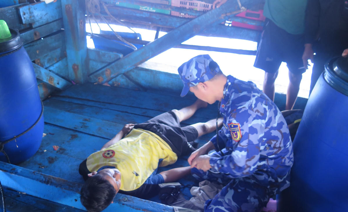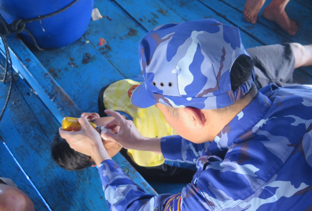 Theo đó, hơn 1 ngày qua, kể từ thời điểm tiếp cận hiện trường, tàu CSB 8002 đã tích cực phối hợp với lực lượng kiểm ngư và ngư dân mở rộng tìm kiếm xung quanh vị trí tàu QNa 90129 TS gặp nạn. Đồng thời tiếp cận các ngư dân gặp nạn, thăm hỏi, động viên và hỗ trợ y tế cho các trường hợp bị thương, bị đau.