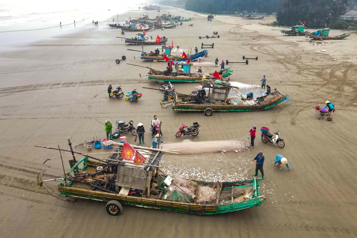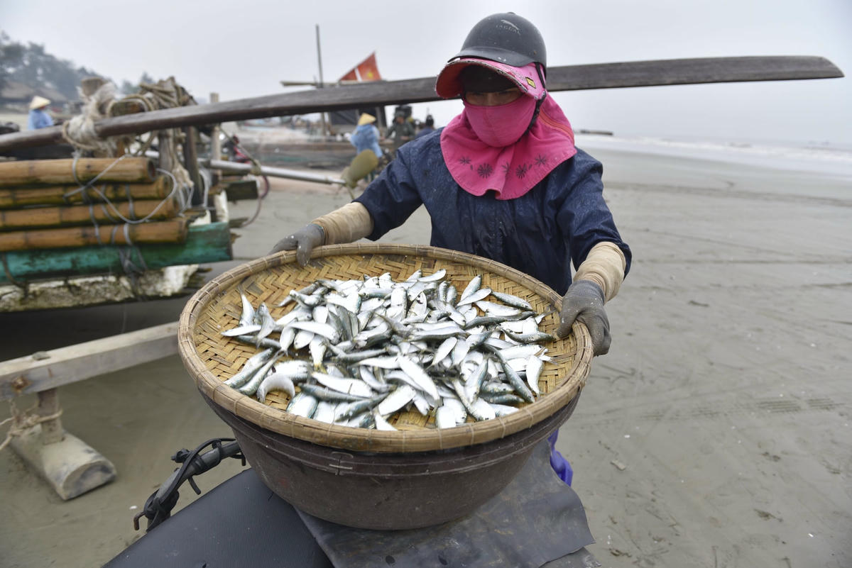 Chỉ sau 1 đêm ra khơi, mỗi thuyền của ngư dân Thanh Hoá thu về gần 2 tạ cá trích. Khi đưa thuyền cập bến, các thương lái nhanh chóng thu mua để phân phối tiêu thụ tại các chợ dân sinh.
