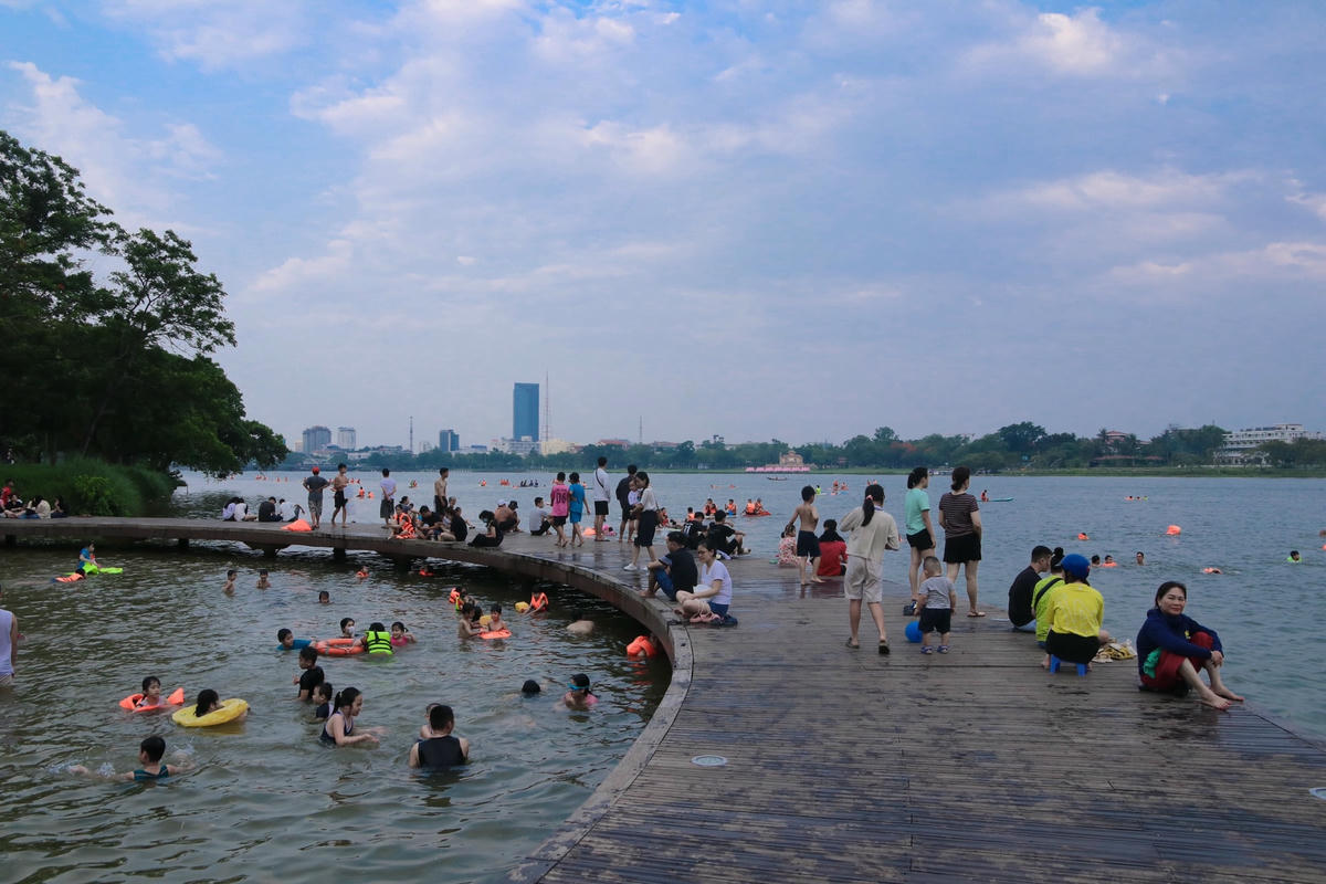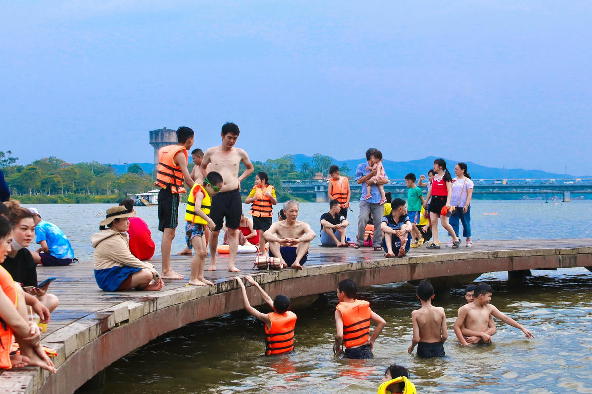 Những ngày qua, trên địa bàn tỉnh Thừa Thiên - Huế xuất hiện nắng nóng và nắng nóng gay gắt trên diện rộng.Tại thành phố Huế nhiệt độ trong ngày lên tới 38-39 độ C. Trước tình hình nắng nóng gay gắt, nhiều người dân đã xô ra sông Hương để giải nhiệt.Vào các buổi sáng và chiều muộn, người dân từ người lớn đến trẻ nhỏ được trang bị áo phao tìm ra sông Hương để tắm mát.Cây cầu hình bán nguyệt bên bờ sông Hương như là một bể bơi ngoài trời, nơi tập trung nhiều em nhỏ được người lớn đưa đến để tắm và tập bơi.Để đảm bảo an toàn, hầu như mọi người đều mặc áo phao khi tắm.Nhiều em nhỏ thích thú khi được tắm dưới dòng nước mát.Bên cạnh đó, nhiều người chọn chèo Sup ngắm cảnh trên dòng sông Hương thơ mộng.Trời càng về chiều, lượng người đổ xô ra dòng sông Hương để tắm và hóng mát càng đông. Theo Văn phòng Ban chỉ huy PCTT&TKCN tỉnh Thừa Thiên - Huế, trong ngày 23/5 trên địa bàn tỉnh này có nắng nóng trên diện rộng, có nơi nắng nóng gay gắt; đến ngày 24-25/5 nền nhiệt độ giảm dần, nắng nóng chỉ còn xảy ra cục bộ ở một vài nơi sau đó kết thúc.