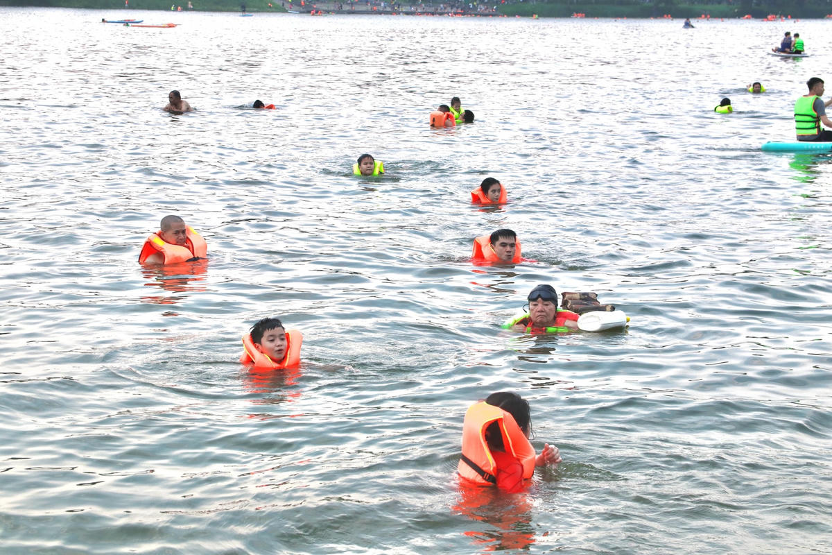 Trước thời tiết nắng nóng gay gắt, hàng trăm người dân ở thành phố Huế đổ xô ra sông Hương tắm mát để giải nhiệt.