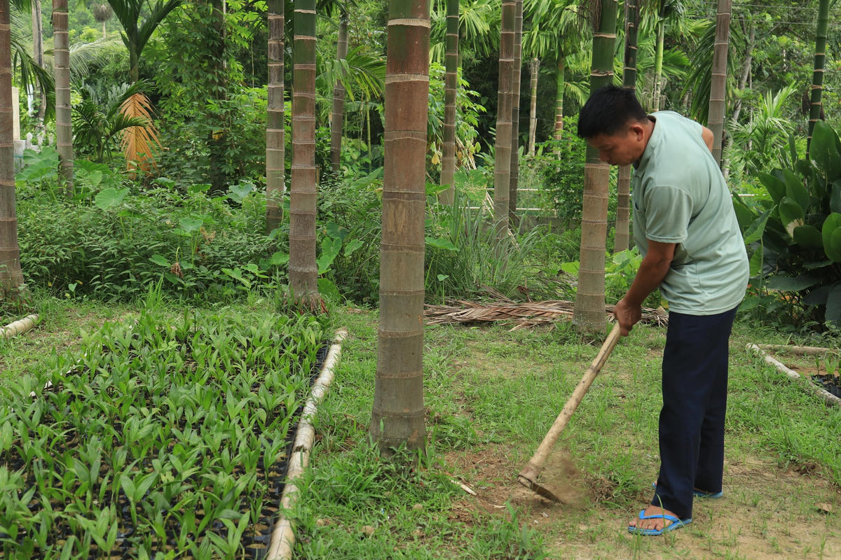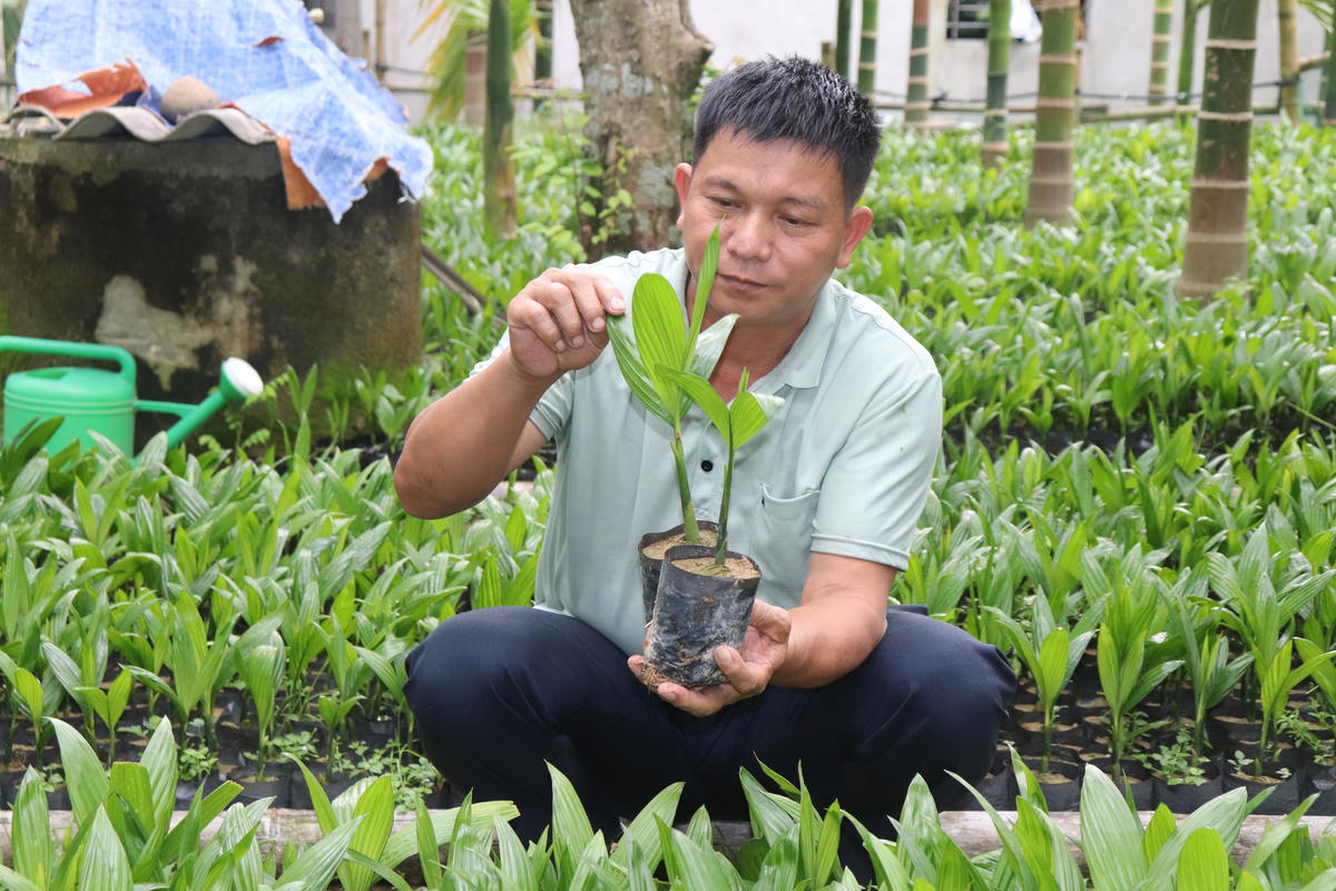 Không nản chí, anh Dũng đã lên mạng, sưu tầm sách, báo hướng dẫn kỹ thuật chọn giống, ươm giống, trồng cau để học hỏi và trồng trám lại những diện tích cau bị chết.
