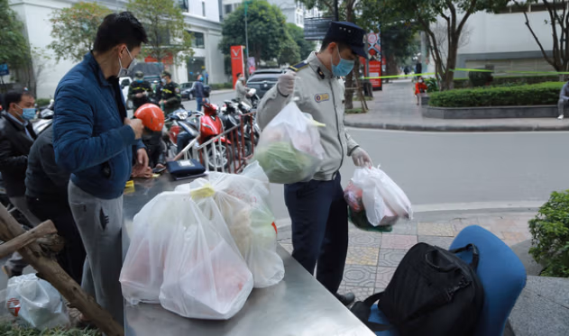 Nhiều người dân đã đặt mua nhu yếu phẩm, lương thực để nhờ người thân vận chuyển đến. Toàn bộ nhu yếu phẩm, lương thực đều được xếp gọn tại bàn phía bên ngoài khu cách ly rồi được lực lượng bảo vệ vận chuyển đến từng hộ gia đình trong khu cách ly.