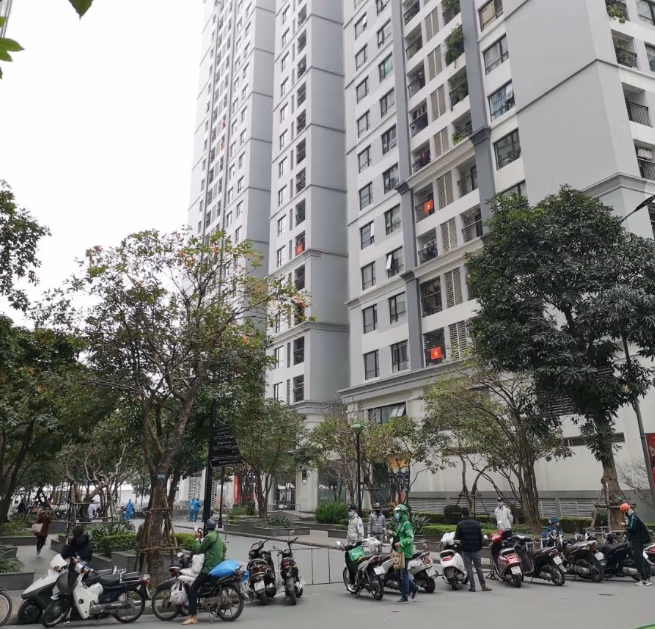 [ẢNH] Phong tỏa tòa nhà T6 Times City, nhiều người tiếp tế thực phẩm cho người thân bị cách ly