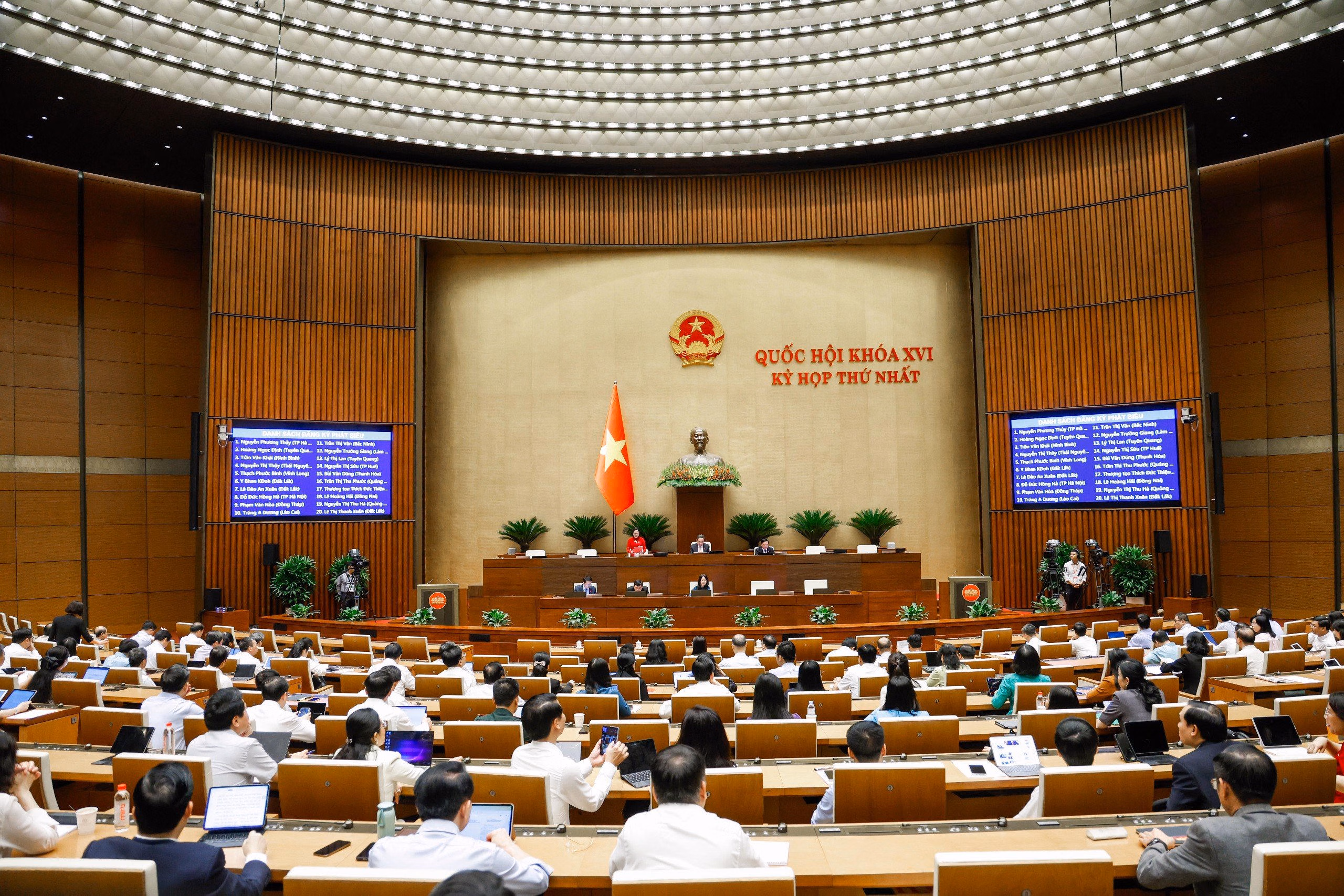 Theo chương trình Kỳ họp thứ nhất Quốc hội khóa XVI, sáng 22/4, Quốc hội thảo luận ở hội trường cho ý kiến đối với Nghị quyết của Quốc hội về một số cơ chế, chính sách đột phá phát triển văn hoá Việt Nam và Nghị quyết của Quốc hội về việc thành lập thành phố Đồng Nai trực thuộc Trung ương.
