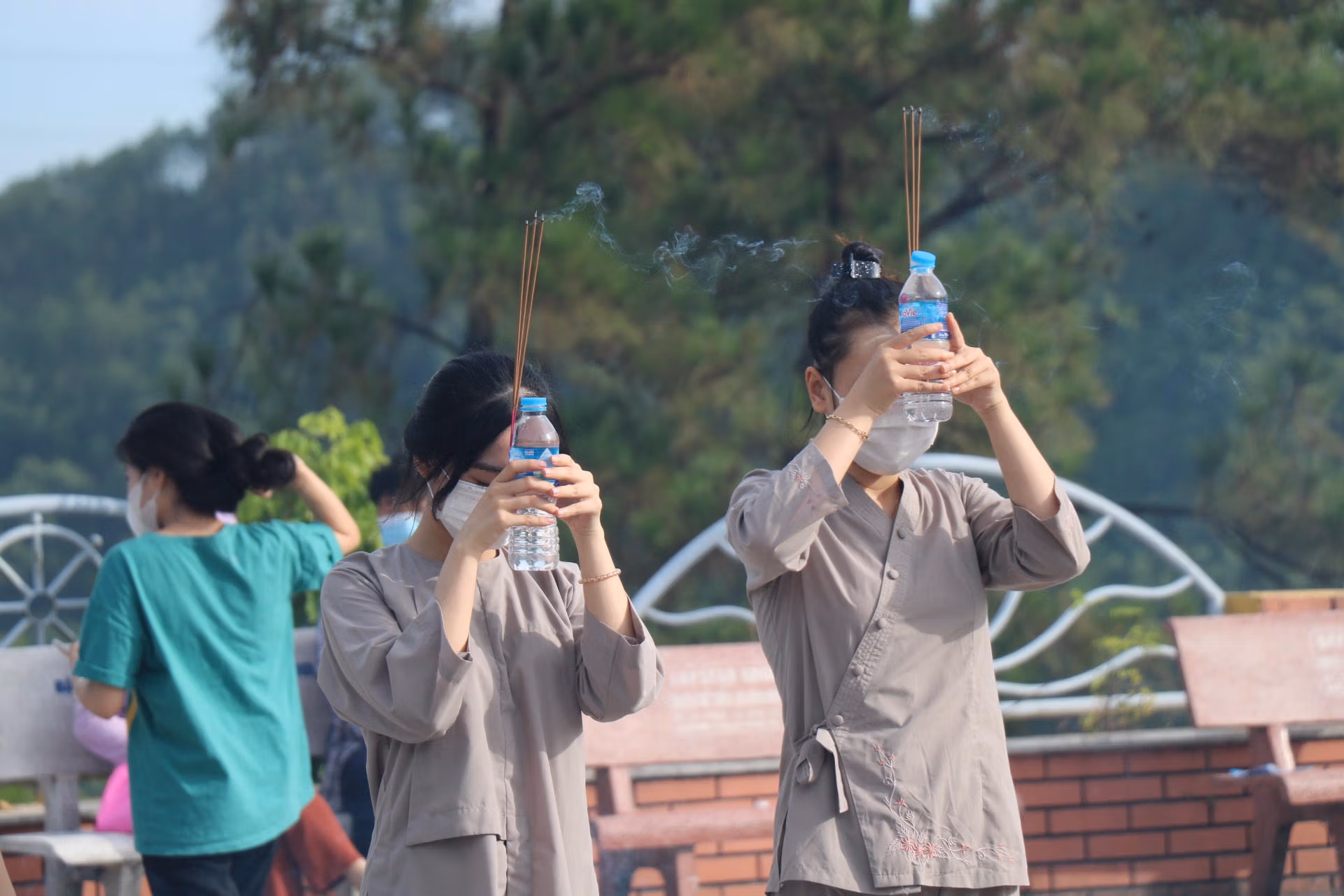[ẢNH] Sĩ tử lễ Phật cầu may mắn trước kỳ thi THPT Quốc gia Thứ Tư 06/07/2022 09:53 (GMT+7) Rất đông sĩ tử tại tỉnh Thừa Thiên - Huế đã về tượng Phật Quan Thế Âm Bồ Tát để dâng hương, cầu nguyện gặp được nhiều may mắn trong kỳ thi THPT Quốc gia 2022. Trước khi bước vào kỳ thi THPT Quốc gia 2022, rất nhiều sĩ tử tại tỉnh Thừa Thiên - Huế đã đến tượng Phật Quan Thế Âm Bồ Tát, nằm ở xã Thủy Bằng (thành phố Huế, tỉnh Thừa Thiên-Huế) để cầu nguyện với mong muốn gặp được nhiều may mắn, mọi điều suôn sẻ trong kỳ thi sắp đến.Mặt khác, khuôn viên nơi tượng Phật Quan Thế Âm Bồ Tát toạ lạc nằm ở ngọn đồi cao, không khí trong lành cũng là cách để các sĩ tử giải tỏa bớt những căng thẳng sau thời gian dài ôn tập, có tâm lý thoải mái nhất trước khi bước vào một kỳ thi cực kỳ quan trọng.Trước khi đến đây, các sĩ tử mang theo hương và chai nước đặt dưới nền trước tượng Phật để cầu nguyện. Những chai nước sau đó sẽ được các sĩ tử dùng để uống với mong muốn mọi việc sẽ được xuyên suốt trong lúc làm bài thi.Ngoài nước lọc, các sĩ tử còn mang thêm vòng tay, bút, máy tính... đặt trước tượng Phật Quan Thế Âm Bồ Tát để cầu mong mọi điều tốt lành sẽ đến với mình trong suốt kỳ thi.Em Trần Thị Thuỳ Dương (trú tại phường Phú Thượng, thành phố Huế) cho biết, năm nay em đặt nguyện vọng thi vào trường Đại học Kinh tế - Đại học Huế. "Đến thời điểm hiện tại, về kiến thức cơ bản em đã nắm khá vững, tuy nhiên hôm nay em đi cùng với bạn lên đây để cầu cho mình sức khỏe và may mắn trong kỳ thi sắp tới", Thuỳ Dương cho hay. Sau khi dâng hương, các sĩ tử tranh thủ ngồi thư giản, trò chuyện cùng bạn bè trước khi bước vào kỳ thi quan trọng.Ngoài các sĩ tử, nhiều bậc phụ huynh cũng đến đây để lễ Phật, mong mọi điều tốt lành cho con mình trong kỳ thi sắp đến.Năm nay, các sĩ tử sẽ chính thức bước vào ngày thi đầu tiên (ngày 7/7) với môn Ngữ văn và Toán. Nguyễn Quốc