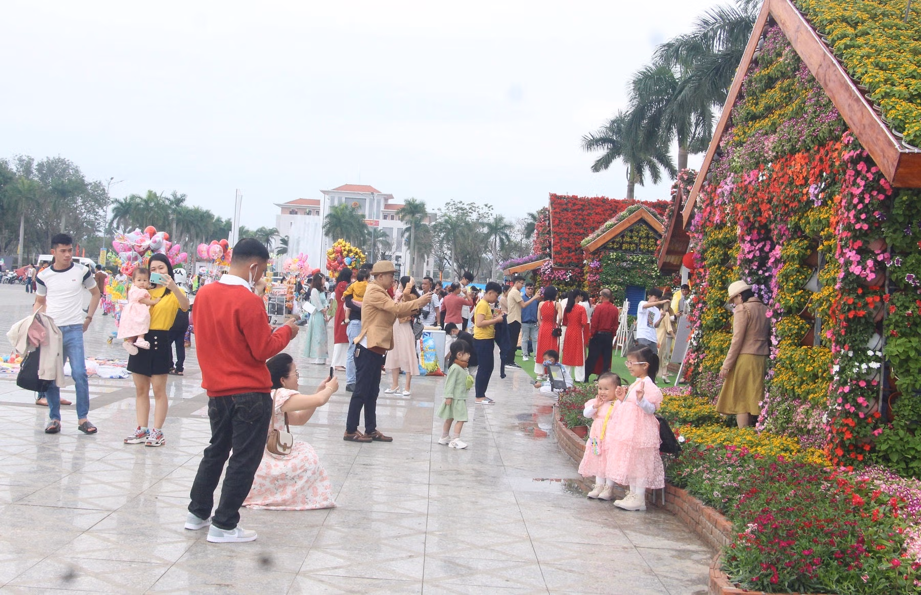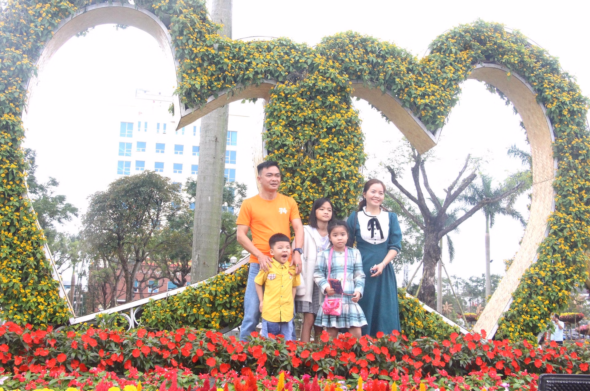 Sáng 22/1 (tức 1 mùng Tết), ghi nhận của chúng tôi có rất nhiều người dân Quảng Nam và du khách đến Quảng trường 24/3, TP Tam Kỳ là một trong những nơi được trang trí đón xuân với những loại hoa khoe sắc rực rỡ để chụp ảnh lưu niệm.