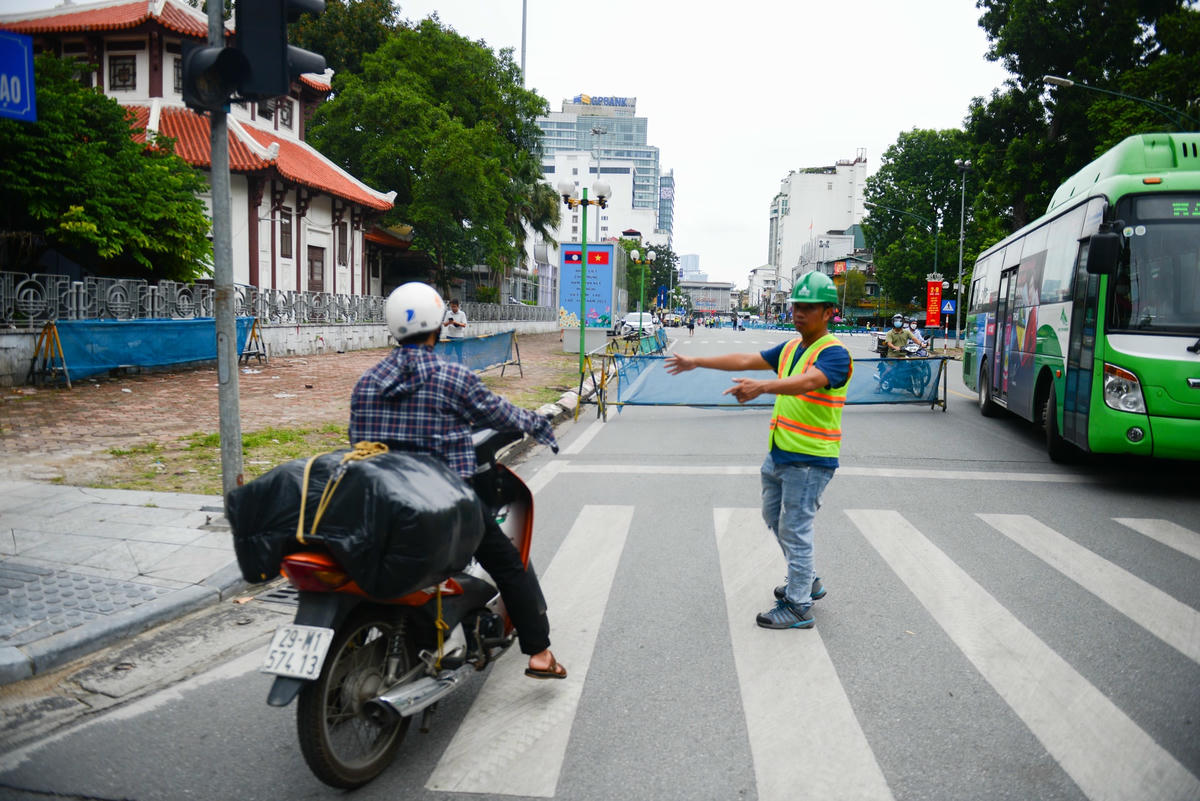 Sáng 20/8, nhà thầu CP3 phối hợp với Ban Quản lý đường sắt đô thị Hà Nội tiến hành phân luồng giao thông trên phố Trần Hưng Đạo, nhằm tiến hành giai đoạn 2 ga S12 của đường sắt đô thị Nhổn - Hà Nội.