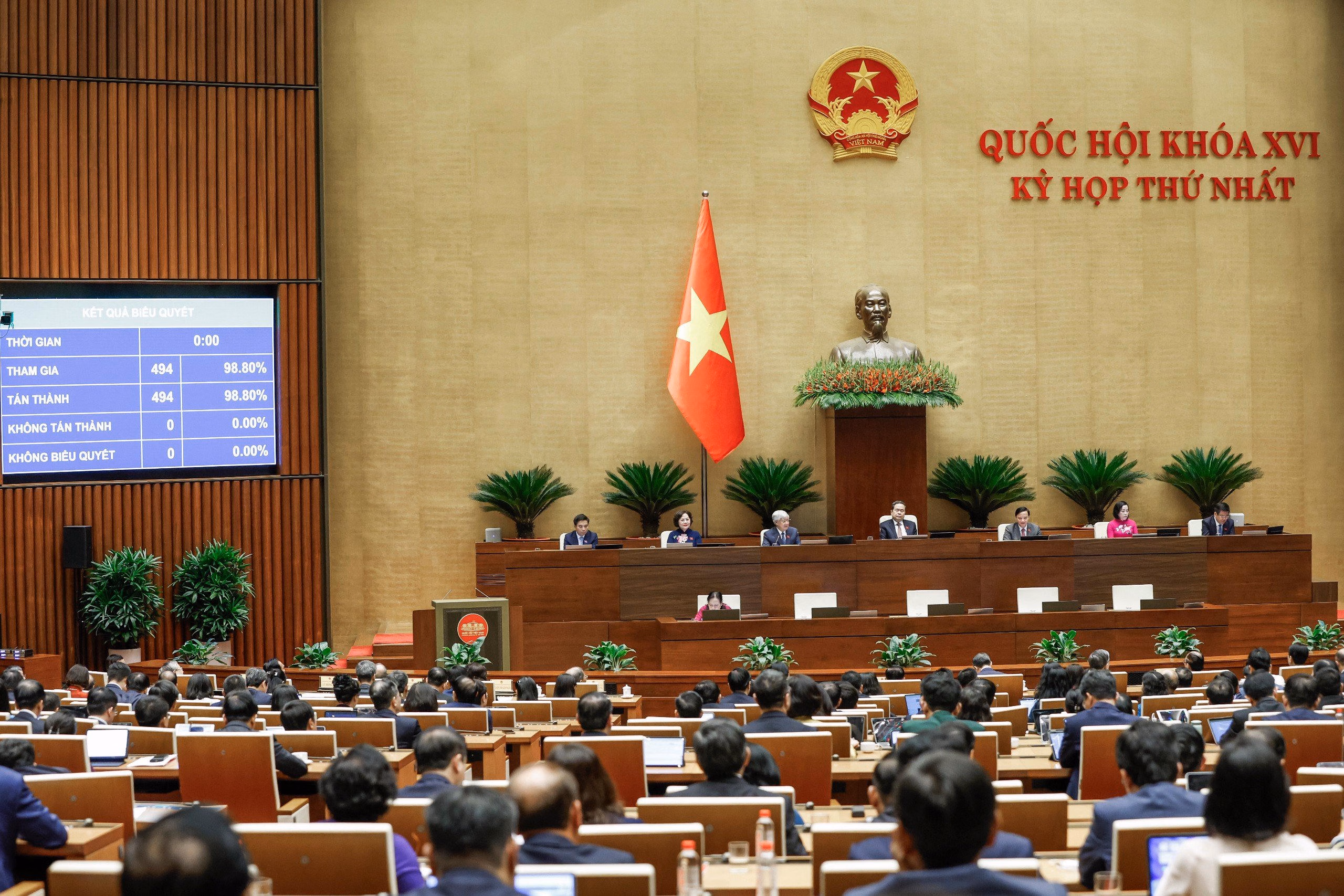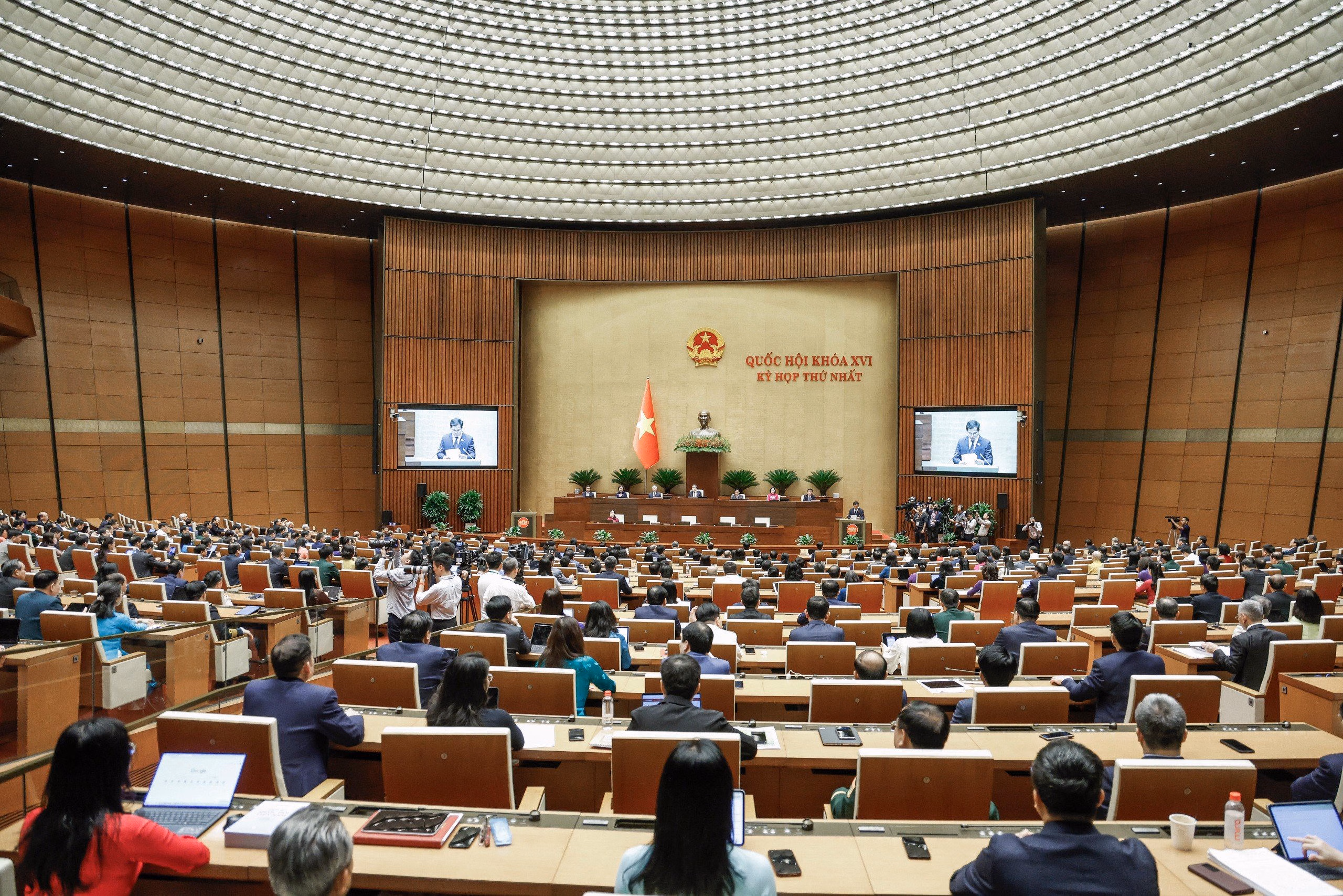 Sáng 24/4, sau khi tiến hành thủ tục biểu quyết thông qua các dự thảo nghị quyết, Quốc hội họp phiên bế mạc, chính thức khép lại Kỳ họp đầu tiên của nhiệm kỳ Quốc hội khóa XVI.