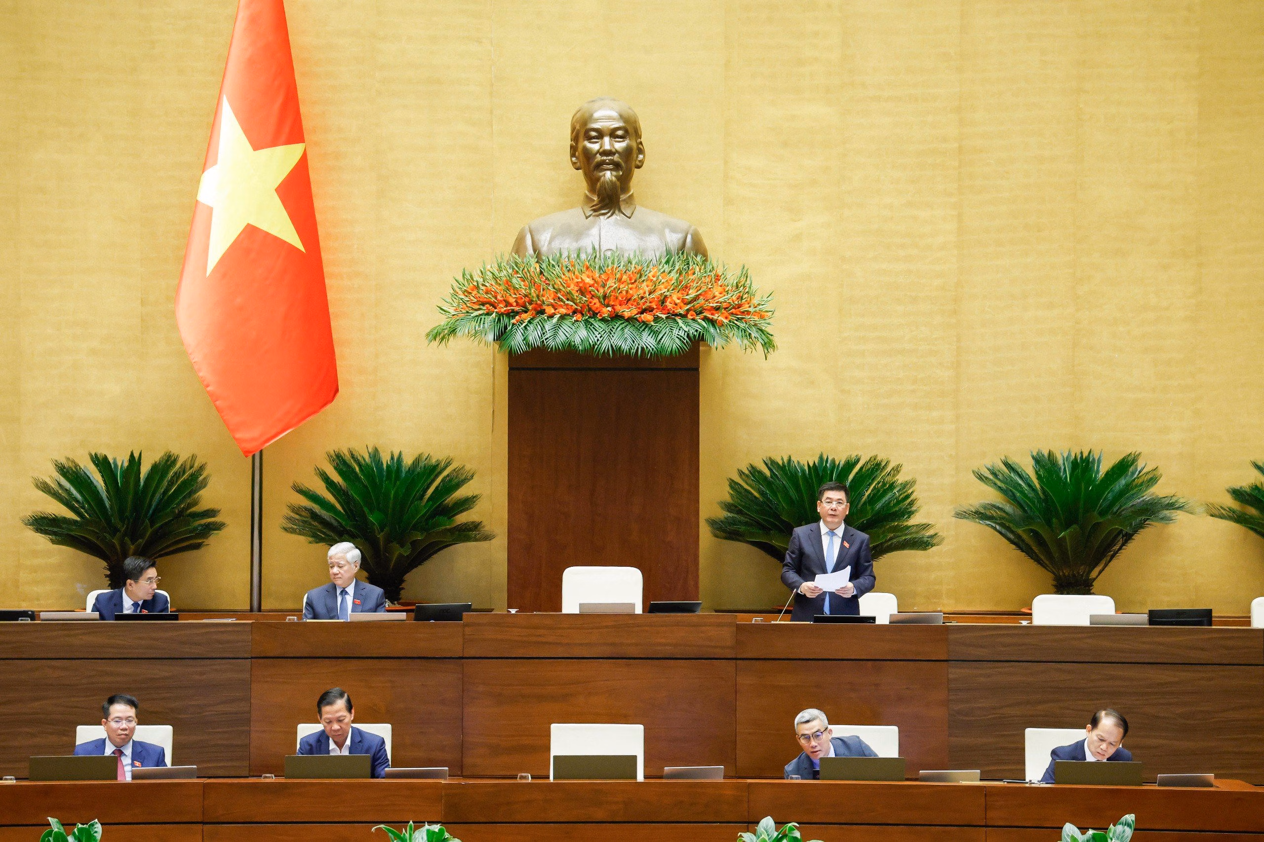 Chiều 11/4, Quốc hội thảo luận tại hội trường về Dự thảo Nghị quyết của Quốc hội về cơ chế phối hợp, chính sách đặc thù nâng cao hiệu quả phòng ngừa và giải quyết tranh chấp đầu tư quốc tế và Dự án Luật sửa đổi, bổ sung một số điều của Luật Cơ quan đại diện nước Cộng hòa xã hội chủ nghĩa Việt Nam ở nước ngoài.