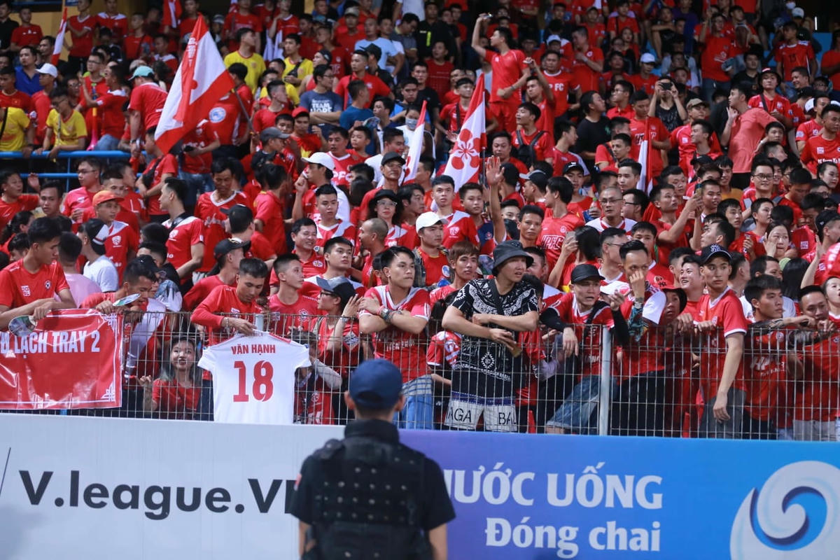 Khán giả cuồng nhiệt cổ vũ cho trận đấu giữa CLB Hà Nội và Hải Phòng vòng 10 LS V-League 2020. Mặc dù an ninh thắt chặt nhưng vẫn xuất hiện tình trạng đốt pháo sáng của cổ động viên quá khích.