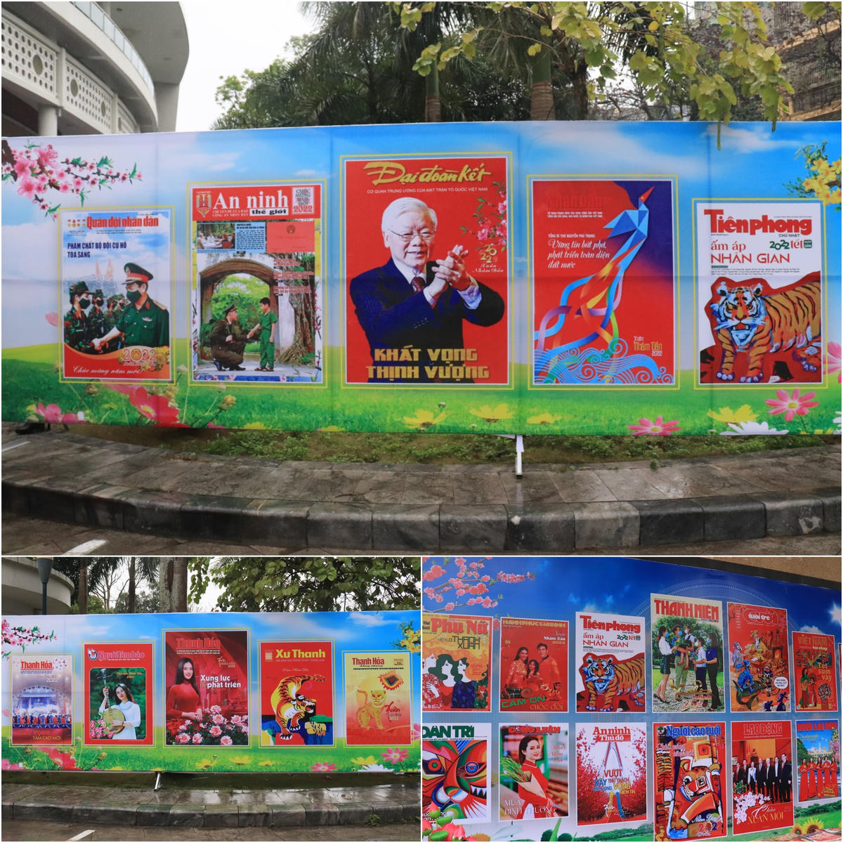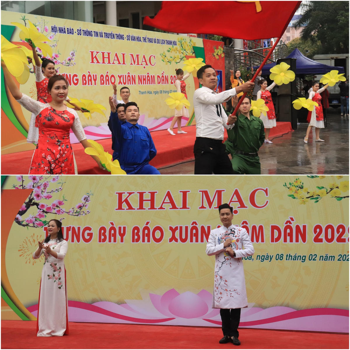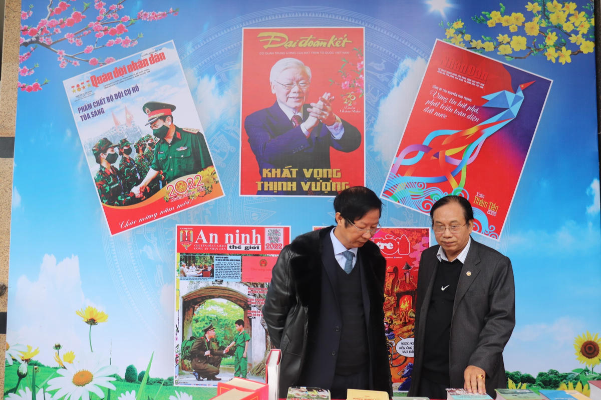 Các tiết mục nghệ thuật khai hội báo Xuân Nhâm Dần 2022.Với chủ đề “Mừng Đảng - Mừng xuân, kỷ niệm 75 năm ngày Bác Hồ lần đầu tiên về thăm Thanh Hóa”, Hội báo Xuân và trưng bày sách báo Xuân Nhâm Dần 2022 có sự tham gia của gần 300 ấn phẩm báo chí số Tết 2022 và Xuân Nhâm Dần của các cơ quan báo chí Trung ương và địa phương. Các ấn phẩm phản ánh đậm sắc Xuân, sự đổi mới toàn diện của quê hương, đất nước, nhất là những thành quả lớn lao trong những năm qua. Mỗi trang báo là tấm lòng, tình cảm, trách nhiệm, sự nhiệt huyết, đam mê của người làm báo cũng như quyết tâm chính trị của mỗi cơ quan báo chí. Thư Bác Hồ gửi nhân dân Thanh Hoá được đặt trang trọng tại nhiều vị trí trong hội báo Xuân. Cùng với đó là những bức ảnh lưu niệm hiếm hoi trong quãng thời gian Bác Hồ về thăm Thanh Hoá.Báo Đại Đoàn Kết được trưng bày tại nhiều vị trí trang trọng, thuận tiện để đọc giả đón đọc.CLB thư pháp Thanh Hoá gửi tặng các bức thư pháp bằng chữ Hán và chữ Việt.Ban tổ chức trao tặng cờ lưu niệm cho các đơn vị có ấn phẩm tham dự.Các đại biểu cắt băng khai mạc trưng bày báo Xuân.
