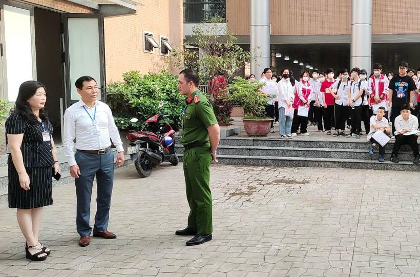 Ngoài kiểm tra điểm thi THCS Giáp Bát, Phó Trưởng ban thường trực Ban Chỉ đạo thi và tuyển sinh năm 2023 quận Hoàng Mai còn có mặt tại Trường THPT Trương Định, THCS Tân Mai, THCS Linh Đàm kiểm tra lần cuối công tác chuẩn bị, giải quyết các tình huống phát sinh.