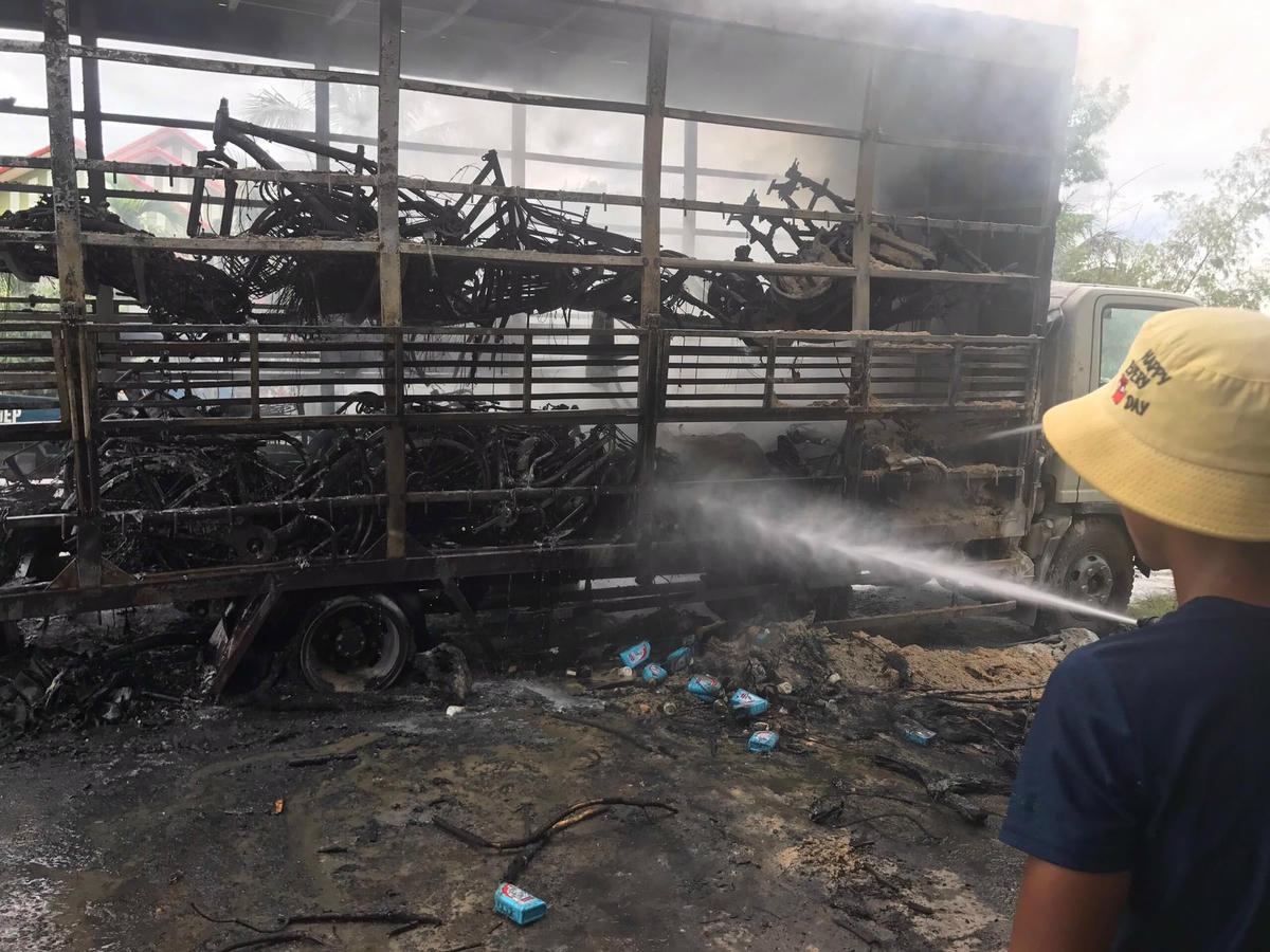 'Bà hỏa' bất ngờ thiêu rụi chiếc xe tải và hàng chục chiếc xe đạp