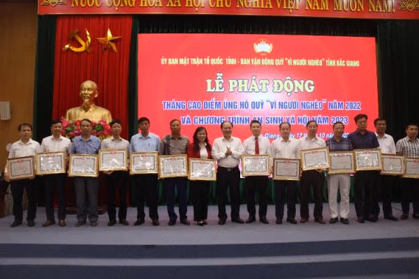 Tại lễ phát động, đã có trên 37 cơ quan, đơn vị, doanh nghiệp, địa phương đăng ký ủng hộ Quỹ “Vì người nghèo” với tổng số tiền hơn 89,75 tỷ đồng. Nhân dịp này Ban Thường trực Ủy ban MTTQ Việt Nam tỉnh Bắc Giang đã trao tặng 14 Bằng khen cho các tập thể có nhiều thành tích trong vận động, ủng hộ xây dựng Quỹ “Vì người nghèo” và Chương trình an sinh xã hội năm 2022.