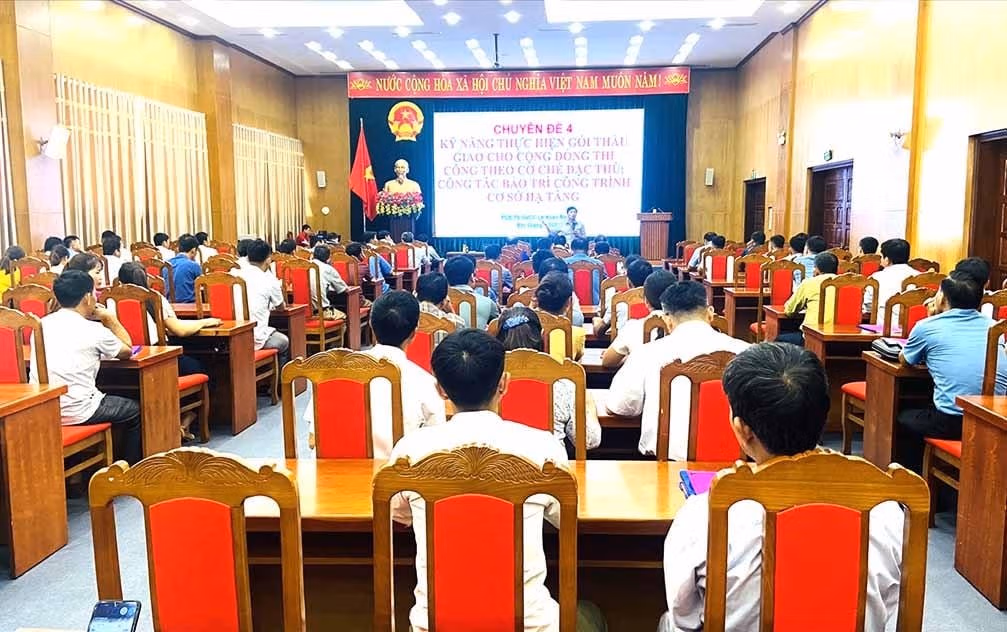 Nội dung tập huấn thuộc Dự án 4, Chương trình mục tiêu quốc gia phát triển kinh tế - xã hội vùng đồng bào DTTS và miền núi giai đoạn 2021 - 2030; giai đoạn I: Từ 2021 - 2025 (gọi tắt là Chương trình MTQG 1719), nguồn vốn năm 2023, 2024. Bao gồm những thông tin cơ bản về gói thầu giao cho cộng đồng thi công; vai trò của cộng đồng tham gia thực hiện gói thầu thi công; nguyên tắc lựa chọn nhà thầu tham gia thực hiện của cộng đồng; quy trình lựa chọn nhà thầu là cộng đồng dân cư, tổ chức đoàn thể, tổ, nhóm thợ; tạm ứng, thanh toán và giám sát, nghiệm thu công trình; tổ chức thực hiện công tác bảo trì công trình cơ sở hạ tầng…