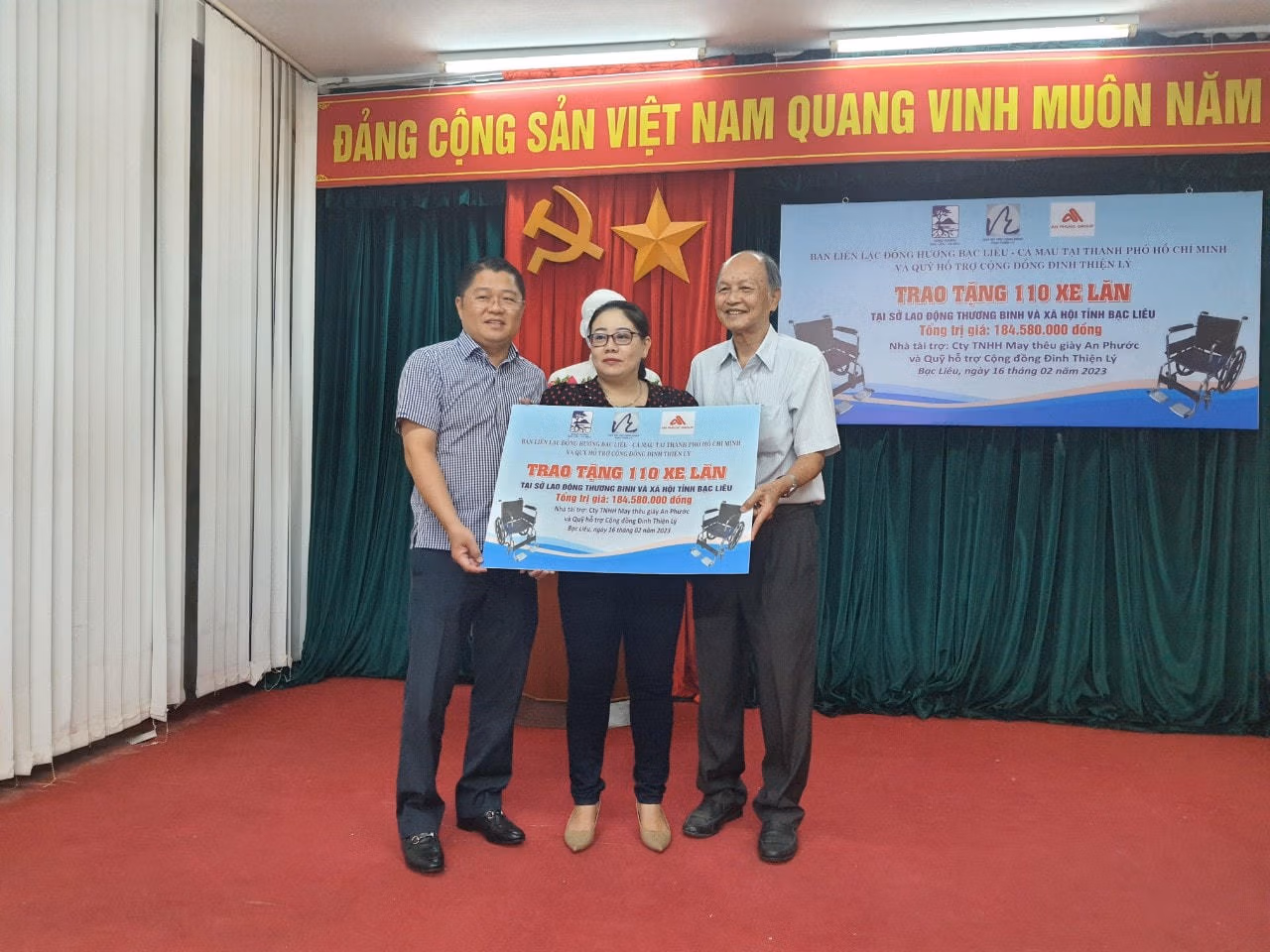 Ban Liên lạc đồng hương Bạc Liêu- Cà Mau tại Thành phố Hồ Chí Minh và Quỹ hỗ trợ cộng đồng Đinh Thiện Lý tặng 110 xe lăn cho người khuyết tật tỉnh Bạc Liêu.
