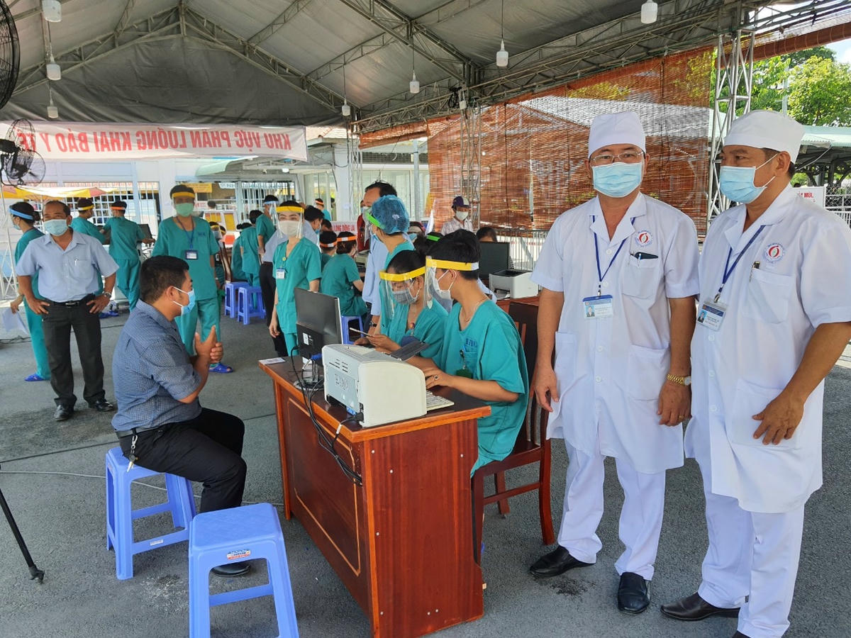 “Cùng với đó, bệnh viện đã triển khai thực hiện khai báo y tế online để giảm sự tập trungđông người. Bên cạnh việc thực hiện nghiêm túc thông điệp 5K: “Khẩu trang - Khử khuẩn - Khoảng cách - Không tập trung - Khai báo y tế”, Bệnh viện sẽ luôn luôn kiểm soát chặt chẽ việc thực hiện phòng chống dịch. Tất cả bệnh nhân và người nhà khi đến thăm khám đều được phân luồng, đo thân nhiệt, khai báo y tế, đeo khẩu trang. Đồng thời, bố trí các chốt sàng lọc cho những bệnh nhân có chịu chứng về hô hấp, đưa vào khu cách ly riêng để thựchiện thăm, khám, nếu không có sẽ thực hiện sàng lọc những yếu tố nguy cơ dịch tễ. Trongtrường hợp có yếu tố nguy cơ dịch tễ sẽ đưa vào khu sàng lọc thứ 2 để test ngay…”, Giám đốc Phạm Thanh Vũ thông tin.